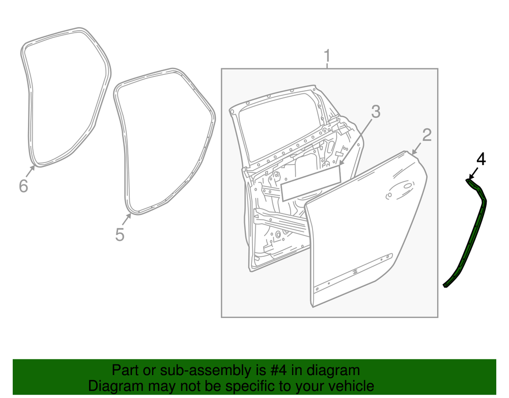 World Parts Direct Genuine Rear Driver Side Door Below Belt Rear Auxiliary Weatherstrip 26679892 Part can be found as # 4 in the diagram above Product Description Rear w'strip. Helps prevent the elements from entering your vehicle's interior Helps reduce road noise This GM Genuine Part is designed, engineered, and tested to rigorous standards and is backed by General Motors Specifications Brand GM Manufacturer Part Number 26679892 SKU 26679892 Product Genuine Rear Driver Side Door Below Belt Rear Auxiliary Weatherstrip 26679892 ONLY PART REFERENCE #4 ON THE DIAGRAM IS INCLUDED About Us WorldPartsDirect is a small, Texas based business located in the Dallas metroplex. There are about twenty of us that work tirelessly to get you the genuine, OEM parts you need at unbeatable prices. We pride ourselves in top quality customer service and our commitment to be the business we would want to shop with. We have one of the largest inventory networks in the country along with some of the most aggressive discounts. We love cars, and we love what we do! We hope you will love shopping with us , and we always welcome feedback on how we can make your shopping experience even better. Terms and Conditions Compatibility Guarantee (optional free service): Applies when you include your VIN during or before checkout. Simply click "Message to Seller" during checkout and include your VIN with any relevant details (ex: driver/ passenger side). Our fitment experts will confirm compatibility before shipping. If we determine that you purchased an incompatible part, we will correct your order if possible. If we cannot correct your order, we will notify you of the issue (ex: discontinued item) and give you the option to cancel. Part Authenticity and Warranty Guarantee: When you order from us, we guarantee that you will receive a genuine, OEM part. We do not stock anything aftermarket! Our parts are warrantied nationwide for 1 year at every Mopar (Chrysler/Dodge/Jeep/Ram) or General Motors (Chevrolet/Buick/GM/GMC) dealer in the country, depending on the brand of part you ordered. We are able to provide documentation that proves the validity of your purchase from our licensed dealership at anytime upon request. This documentation can be used to redeem this warranty if needed at the dealership of your choice and at no cost to you. Return Policy All of our products can be returned within 30 days. Please open a request for any of these reasons: Doesn't Fit Changed My Mind Found a Better Price Just Didn't Like it Ordered by Mistake The reason you pick has no impact on your refund amount, but it has a big impact on us as a seller. Choosing other reasons may delay the refund per an internal investigation and potential eBay appeal. If a part fails at anytime during the 1 year warranty period, any licensed new car dealership in the country that carries your brand of vehicle will replace the part for free. Simply request our dealer invoice for the part and provide it to your preferred dealer along with the defective part. Home • Newsletter Signup • Contact Us Copyright © 2025 World Parts Direct , All rights reserved. Solution by RevolutionParts, Inc. :: Design by OCDesignsOnline