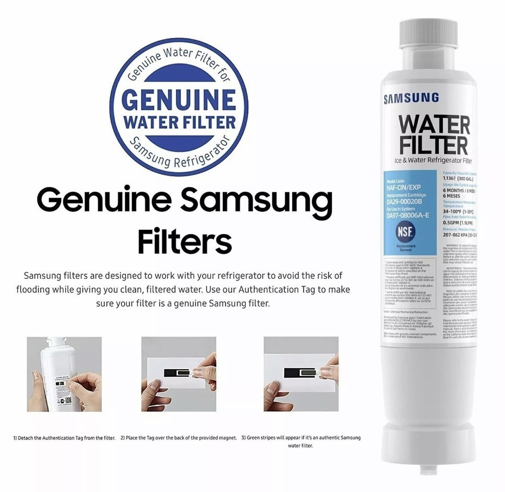 Keep your water crisp and your ice cubes clear with the Samsung DA29-00020B Refrigerator Water Filter, the genuine article for your Samsung Aquarius. This filter is designed to reduce chlorine taste and odor, ensuring that every glass of water is as refreshing as the last. With a 300 L capacity, it's built to last through 300 liters of filtration, keeping your hydration needs covered. The filter boasts a carbon/charcoal filtration method, which means it's efficient at removing contaminants while maintaining a lightweight design. It's a perfect fit for household use, with a simple one-pack setup that ensures you have a ready replacement at hand. The white plastic construction seamlessly integrates with your refrigerator, maintaining an unobtrusive presence in your kitchen. NOTE: One is sealed in box and one was just removed from the box due to box damage.