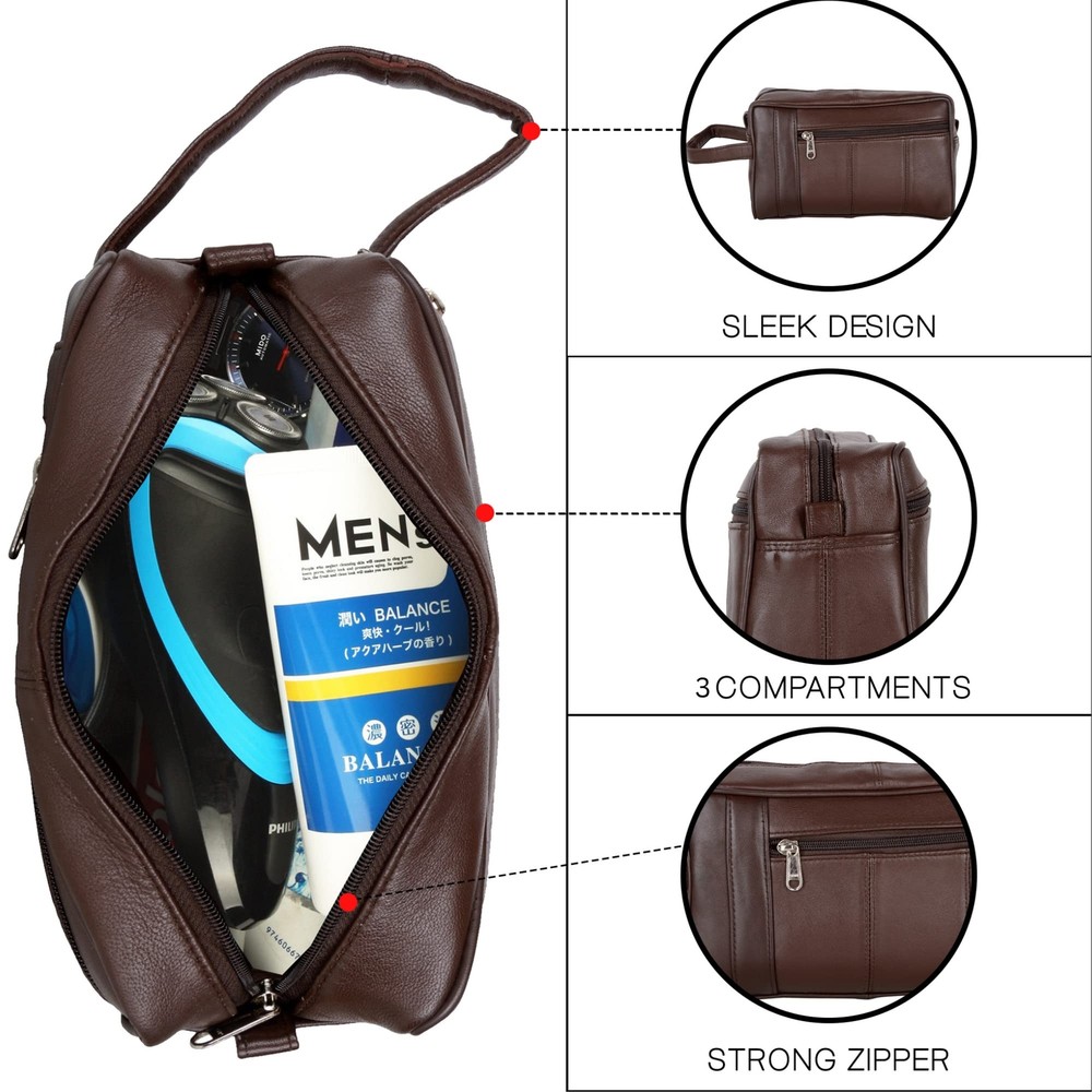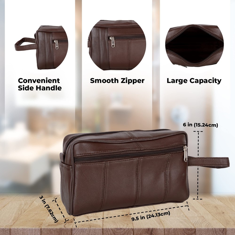 Liberty Leather - Genuine Sheep Nappa Leather Unisex Luxury Toiletry Travel Bag | Bathroom Organizer with Multiple Compartments for Men and Women | Portable Cosmetic Case for Traveling Dopp Kit GENUINE LEATHER - This toiletry bag is made of genuine sheep nappa leather. This luxury leather product is consumer-focused and provides a sturdy, soft, and smooth feeling to the touch MULTIPLE COMPARTMENTS - This luxury travel bag features one main zipper pocket on top, which is a large space for your bigger items as well as two side zipper pockets on either side to provide a sleek look COMPACT PACKING - The sleek design of this dopp kit is perfect for packing away comfortably with your other belongings. It does not take up too much space and leaves room for more belongings to be stored DIMENSIONS - This portable bag measures at 10 in. Long x 3.5in. Wide x 6in. Tall. The main compartment is spacious enough to hold your bigger and bulkier items with ease SHIPPING Domestic Buyers - We have confidence in our products, but if you are not fully satisfied please contact us within 30 days of purchase and you will get full refund. - We ship within 3 business days of payment, usually sooner - We offer FREE shipping on all orders! - We only ship to the lower 48 states, no APO/FPO addresses or PO Boxes allowed International buyers – please note: Import duties, taxes, and charges aren't included in the item price or postage cost. These charges are the buyer's responsibility. - Please check with your country's customs office to determine what these additional costs will be prior to bidding or buying. * Order Cancellation Policy ** You can return a product for up to 30 days from the date you purchased it. 1. The seller reserves the right to cancel the special case only due to eBay cancellation fee. 2. The decision of seller is the final. 3. The seller will respond to the cancellation request within 2 business days. Please wait for the result of cancellation. 4. In case the cancellation is not completed by some reasons, the buyer can follow the options below to get the refund. 4.1 The buyer can reject the item when it arrives. 4.2 The buyer can send the item back to the seller within 30 days If the buyer receives item (USA Shipment ONLY). The seller will provide the FREE return label to the buyer when the buyer opens " Return Item" case on eBay by using the reason as "Change my mind" ONLY. 5. When buyer has placed the order. The order will be processed and completed by automatic warehouse system within 5 minutes. In case that buyer sends the cancellation request after 5 minutes of placing the order, the request will be rejected. **Sending direct message to cancel the order is not allowed for every case.* Return Policy For the return case - If buyer would like to return the items for refund or replacement, please CONTACT SELLER to receive the free return label from seller. The refund or replacement will be processed with the tracking number of return label which is provided by seller only. The other ways of return which are not approved by seller will not be processed for the refund or replacement.