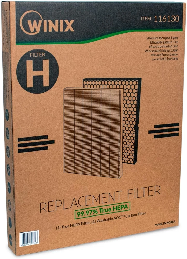 Genuine Winix 116130 Replacement Filter H for 5500-2 Air Purifier , White Product Details Color: White Brand: Winix Product Dimensions: 17.72"D x 12.99"W x 16.73"H Floor Area: 99 Square Meters Controller Type: Hand Control EU Spare Part Availability Duration: 1 Years Contaminant Filtration Capability: True Manufacture Year: 2025 Special Feature: Advanced odor control AOC Carbon filter Manufacturer: Winix Inc Filter Class: HEPA, Carbon Item Weight: 2.16 pounds Item model number: 5500-2 Is Discontinued By Manufacturer: No Assembly required: No Number of pieces: 1 Batteries required: No Included Components: true hepa filter^Washable Advanced Odor Control Carbon Filter; Power SourceItem Weight: Corded Electric2.16 Pounds Power Source: Corded Electric Item Weight: 2.16 Pounds Control MethodFilter Type: TouchHEPA Control Method: Touch Filter Type: HEPA Genuine Winix brand replacement for the Winix 5500-2 air Purifier Includes a 99. 97Percent efficient true HEPA, capturing particles to 0. 3microns With an advanced odor control aoc Carbon filter for blocking VOCs, fumes and odors Winix original filter providing correct airflow Filters last ONE YEAR! Change filters when check filter indicator turns on. Original replacement filter H for the Winix air purifier 5500-2. A one year replacement set with true HEPA filter 99. 97Percent efficient to 0. 3 microns and an advanced odor control AOC carbon filter. Use only original Winix branded filters for the correct filtration capacity.