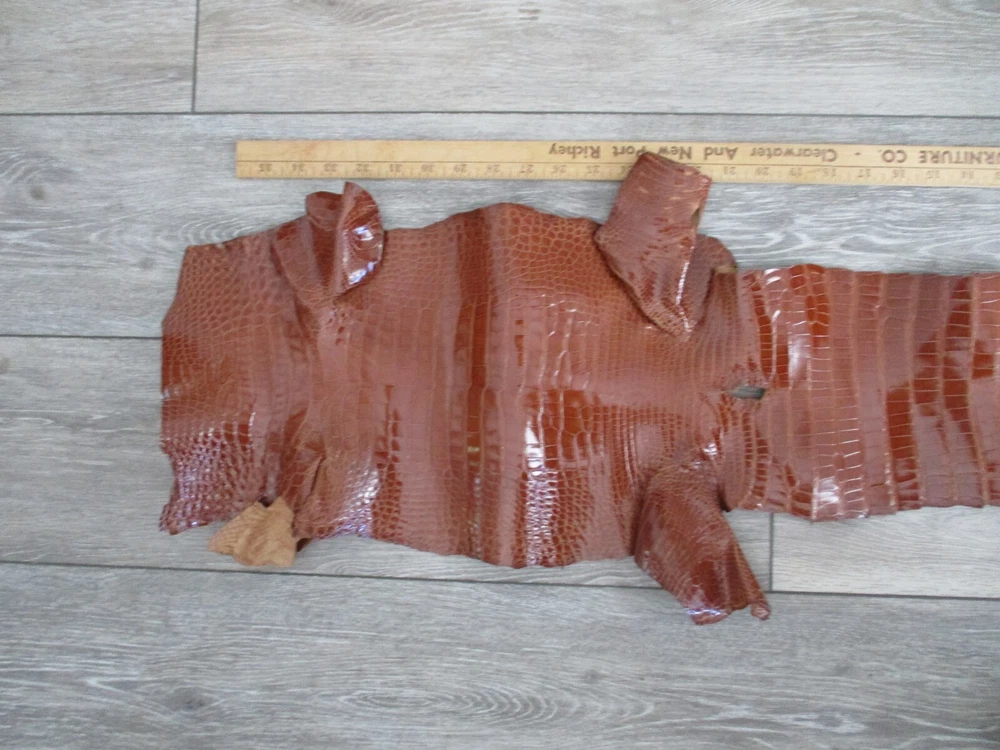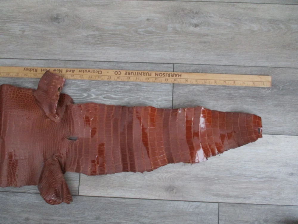 you ARE LOOKING AT preowned professionally tanned CONDITION: Genuine alligator shiny cognac Skin Leather Hide Pelt accessories crafts SMOKE AND PET FREE HOME.USA SHIPPING ONLY. PLEASE CONTACT ME THROUGH E-BAY ONLY. SEE MY OTHER ITEMS IN AUCTION. I AM HAPPY TO COMBINE SHIPPING. THANKS FOR LOOKING. PLEASE ASK QUESTIONS. I TRY TO DESCRIBE ACCURATELY AND WANT YOU TO BE HAPPY WITH PURCHASE SO IF ANY PROBLEMS, PLEASE CONTACT ME.