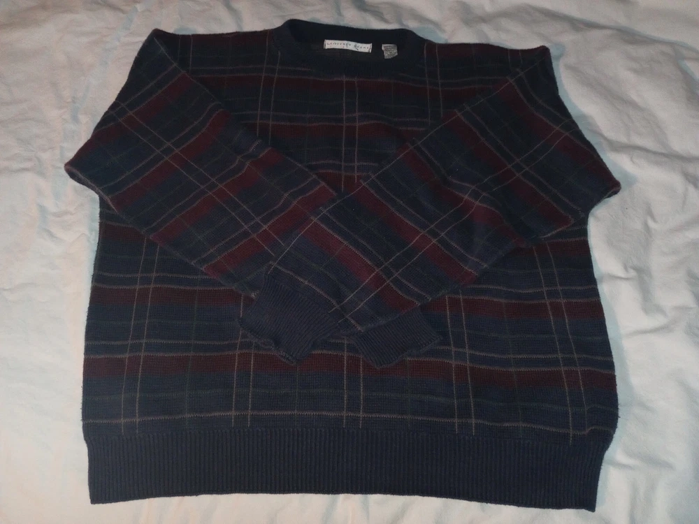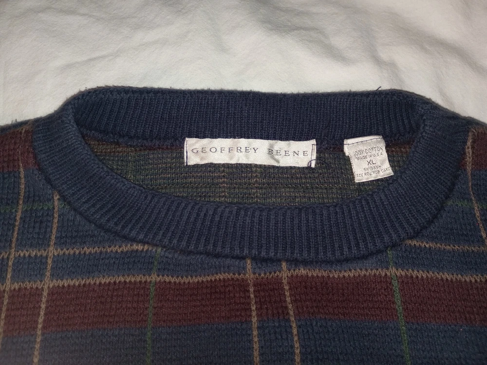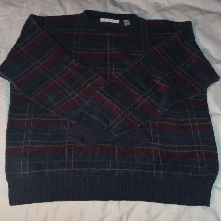 Geoffrey Beene Men XL Sweater Pullover Crewneck Knitted Striped Cotton Blue Red