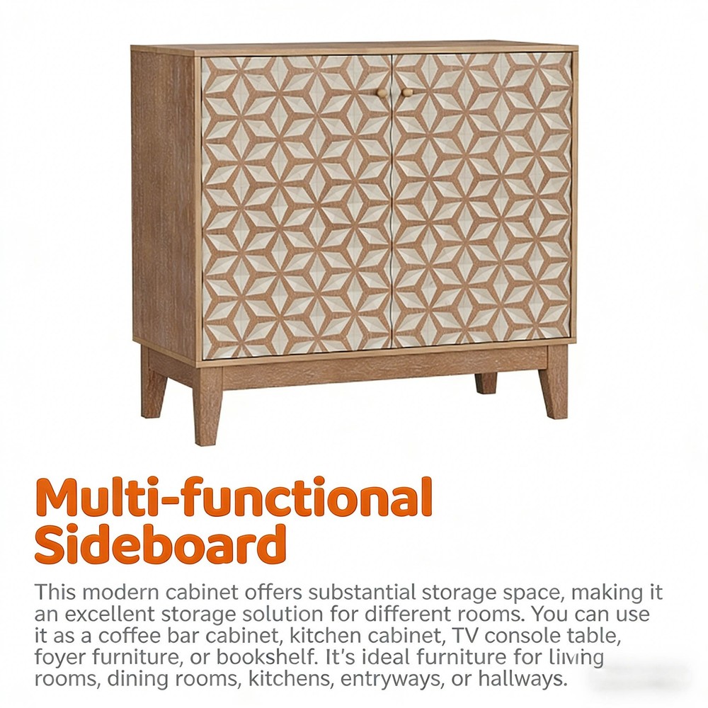 đ Product Highlights Add retro-minimalist charm and practical storage to your home with this 31.5-inch geometric sideboard! Available in two trendy colors (Tangerine & Walnut), it features a unique geometric design, distressed finish, and natural wood grain that embodies farmhouse-inspired elegance. With 2 doors, adjustable shelves, and a sturdy structure, this multi-functional cabinet is perfect for living rooms, kitchens, dining rooms, or entrywaysâblending style with unbeatable functionality. đ Key Specifications Origin : China Colors : Tangerine, Walnut (Natural Wood Tones) Material : High-Quality MDF + Solid Pine Wood (Engineered Hardwood) Style : Farmhouse, Retro-Minimalist, Rustic Application : Dining Room, Living Room, Kitchen, Entryway, Hallway Storage Feature : Adjustable Shelves (3 Height Options) Assembled Dimensions : 31.50â L x 15.00â W x 29.92â H Product Weight : 43.12 lbs Package Dimensions : 36.81â L x 17.91â W x 7.28â H Package Weight : 47.52 lbs Weight Capacity : 220 lbs (Overall) ⨠Core Features â Unique Geometric & Distressed Design : Inspired by classic farmhouse aesthetics, the geometric door pattern and distressed finish exude retro-minimalist charm. Natural wood grain adds warmth, creating a cozy atmosphere that invites relaxation in any living space.â Ample Adjustable Storage : Equipped with adjustable internal shelves (3 height options), this cabinet adapts to different storage needsâperfect for dinnerware, spices, books, decor, or small household items. Multiple units can be combined for expanded storage capacity.â Multi-Functional Versatility : More than just a sideboard! Use it as a coffee bar cabinet, kitchen pantry, TV console, foyer storage, or bookshelf. Its compact size fits seamlessly in small spaces while offering substantial storage.â Durable & Safe Construction : Crafted from thick MDF, solid pine wood legs, and solid wood handles, this cabinet is built for long-term use. Scratch-resistant and water-resistant surface ensures easy cleaning and maintenance. Equipped with an anti-tipping device for safe use with kids and pets.â Easy Assembly : All components are clearly labeled, and the detailed manual walks you through each step. No complicated tools or expertise requiredâassemble quickly and hassle-free. đ Note Due to differences in lighting, monitor settings, and photography, slight color variations may exist between the actual product and images. Please refer to all product photos for the most accurate representation. đĄď¸ Trusted Guarantees 1-Year Manufacturerâs Warranty : We stand behind the quality of our sideboard. Enjoy peace of mind with a 1-year warranty covering manufacturing defects. 30-Day Free Return Policy : Not completely satisfied with your purchase? Return within 30 days for a full refundâno questions asked. Your satisfaction is our top priority! Elevate your homeâs organization and style with this geometric sideboard cabinetâchoose your favorite color (Tangerine or Walnut) and order today to transform any space into a cozy, clutter-free haven!
