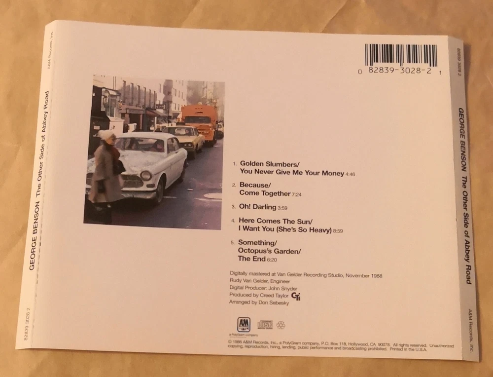 Type:AlbumFormat:CDRelease Title:The Other Side Of Abbey RoadRecord Label:A&MRelease Year:1986Genre:Funk, Jazz, SoulArtist:George BensonFeatures:Studio Recording