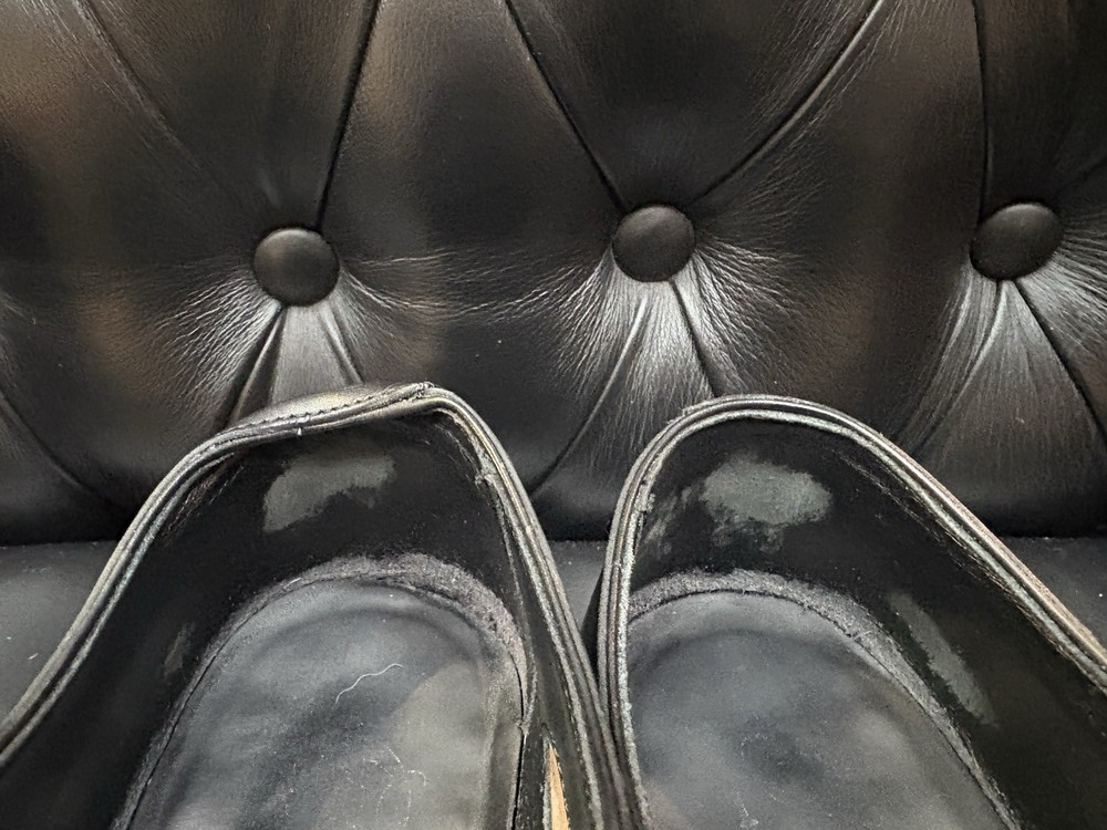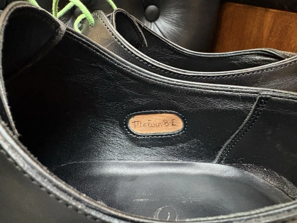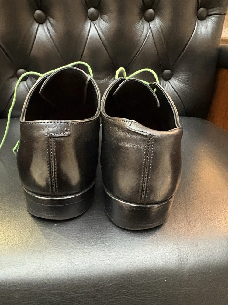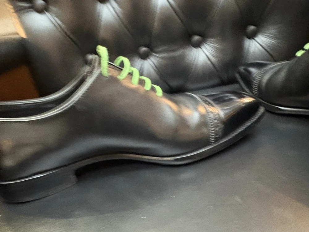George Cleverley men's black captoe Oxford shoes with a high shined toe cap. Uk size 8, US size 9, EU size 42, E width fitting. Rubber sole and lulus added to protect the original leather sole. Wear and tear as shown in pictures. No original packaging.