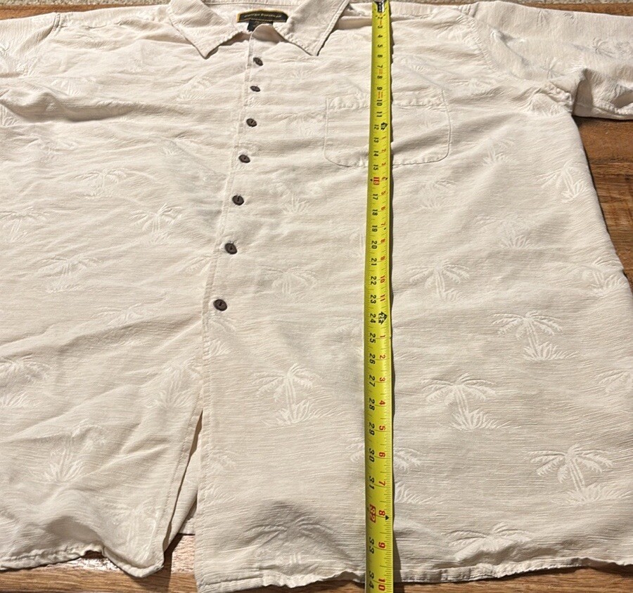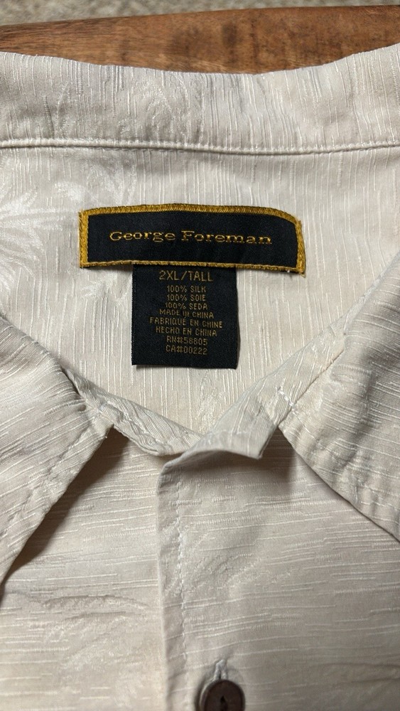 George Foreman 2XL/tall Cream Short Sleeve Shirt Button Down Palm Trees (11)