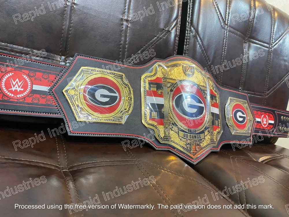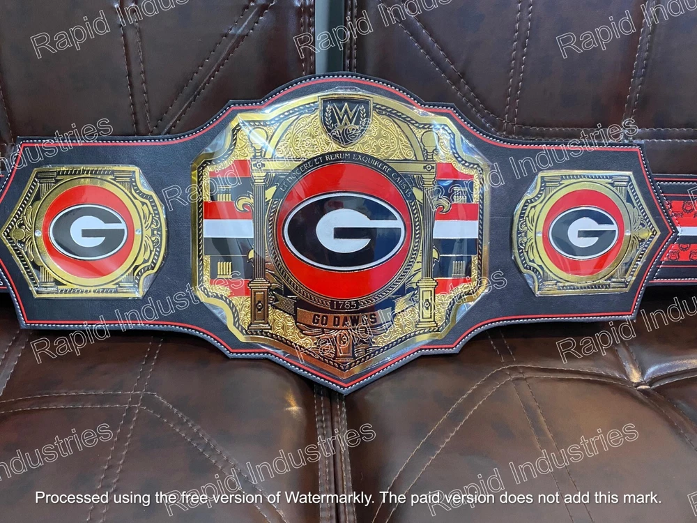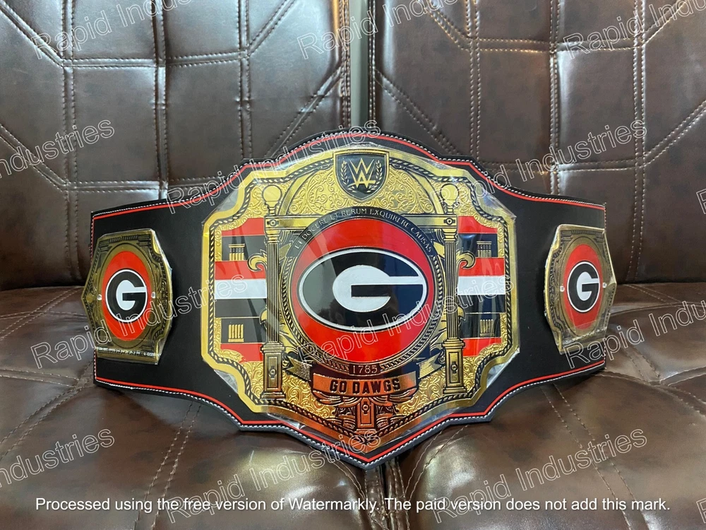 Georgia Bulldogs Championship Legacy Title Belts Adult Size 2mm Brass 100% ORIGINAL LEAT HER STRAP PLATE MATERIAL BRASS PLATE THICK 2mm Strap Is Made With Top Quality. Strap Color You Can Change On Demand. Adult size Full length belt almost 50inch Fits upto 50 inch waist We manufacture all types of wrestling and boxing belts in good and standard quality, apart from this we also manufactue customized belts. You can trust us and place orders without any worries, We do not compromise on our quality. We use good quality leather on our belts and we strive to create a belt that meets the customer's expecations. If you buy more then 1 item, you will also be given a discount. Shipping: We will ship your belt within 7 working days after receiving full payment. We shipped through DHL or FedEx. FeedBack: If you have any problem related to the product, please contact us before giving negative feedback. Your feedback is very important to us and to new customers, so be sure to share your opinion.