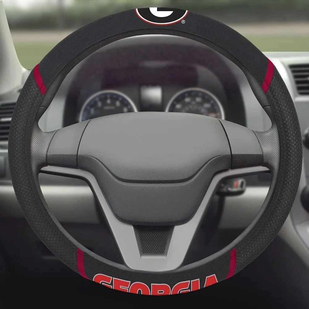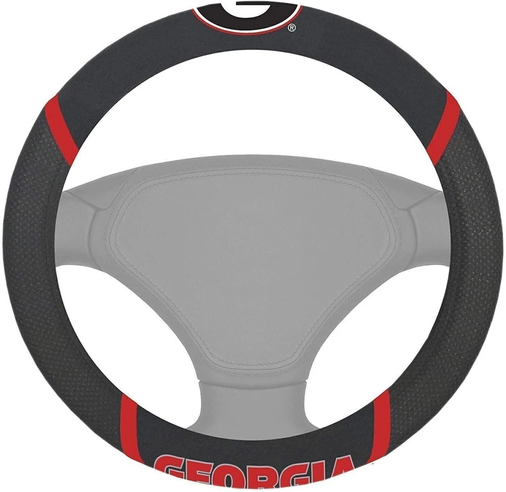Premium 15 Inch Embroidered Black Steering Wheel Cover. Show off your team pride and transform your car's interior with a Steering Wheel Cover from Sports Licensing Solutions. Logo and team name are embroidered. Made of mesh fabric and faux suede. They stay cool in the summer and warm in the winter. Universal fit makes it perfect for most vehicles. Features your favorite team name and logo; dress up your vehicle interior Embroidered with both team logo and team name The combination of faux suede and mesh fabric keeps your steering wheel cool in summer and warm in winter Approximately 15 inches in diameter - fits most vehicles Customize your ride and announce your team spirit with pride