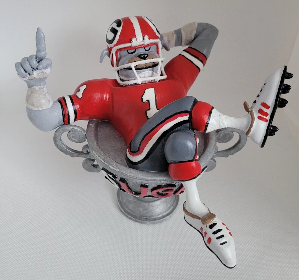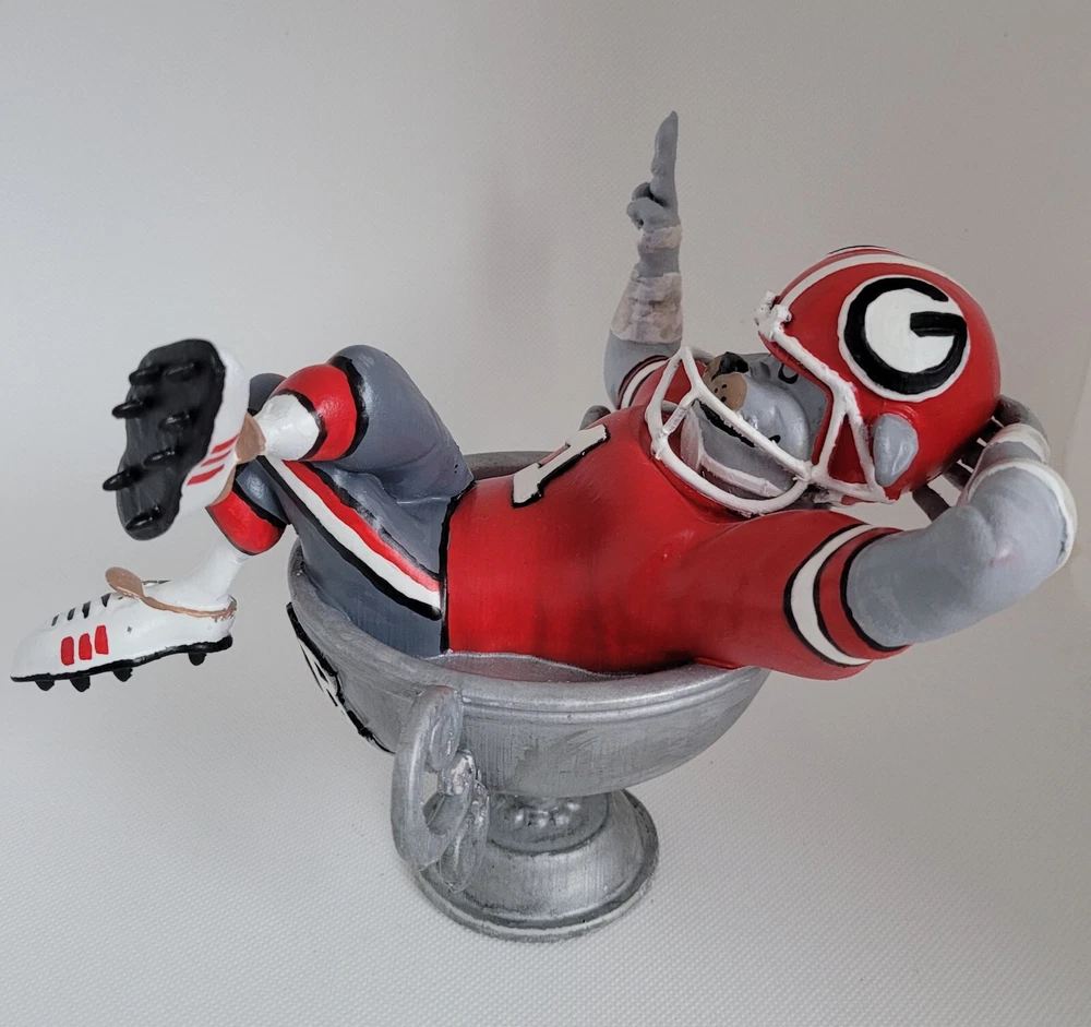 Up for auction is a custom hand crafted figurine. This is the LAST ONE of this edition (numbered to five) that will be available. The figurine was 3D printed and then hand painted and sealed. The figurine was inspired by the art work of Jack Davis. The figurine measures 6.5 inches x 8 inches approximately. The figurine will be shipped via UPS ground unless other shipping arrangements are requested. Good luck and as always if you have any questions or concerns, please feel free to contact us. We usually respond as quickly as possible. Thank you for looking at our auction. Go Dawgs!