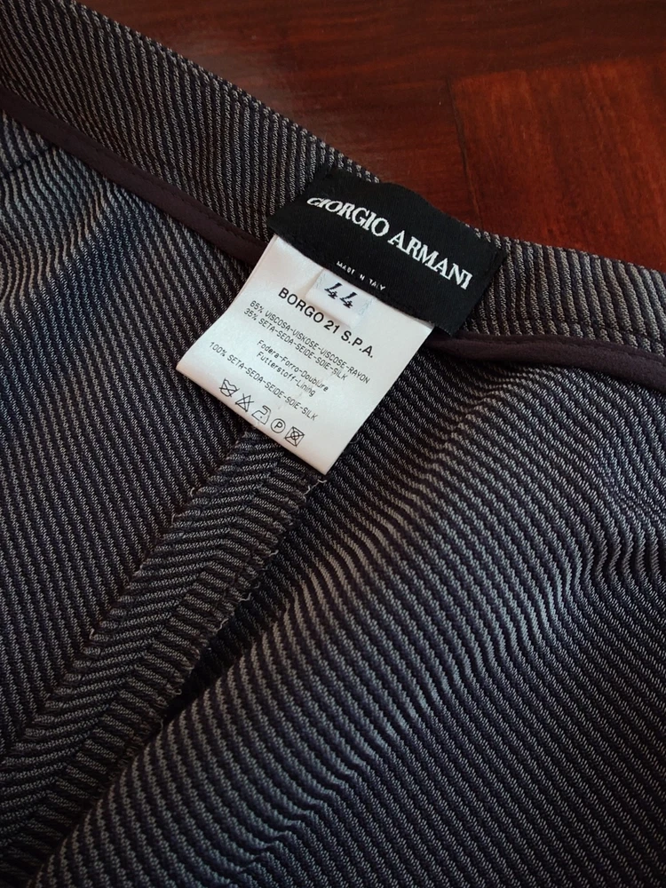Georgio Armani suit Size 44 Womans Trousers and Jacket Leg length of 39.5 inches.