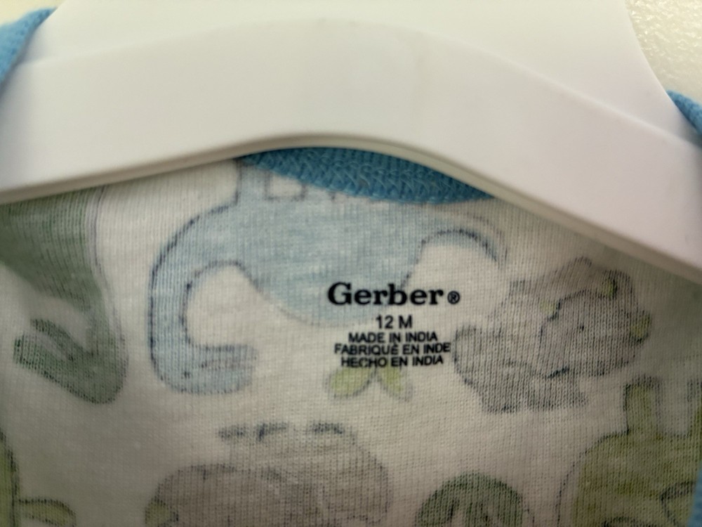 Features: Easy Care, Lightweight, Stretch Style: Onesie Season: Fall, Spring, Summer Occasion: Casual Country of Origin: India Color: White Pattern: Animal Print Size: 12 Months Department: Girls Theme: Animals, Colorful, Dinosaurs Type: One-Piece Sleeve Length: Short Sleeve Neckline: Crew Neck Material: 100% Cotton Garment Care: Machine Washable Brand: Gerber Character: Boy Closure: Snap Seller Notes: “In very good condition. Free of rips or stains.” Number of Pieces: 1 Piece Set Includes: Shorts