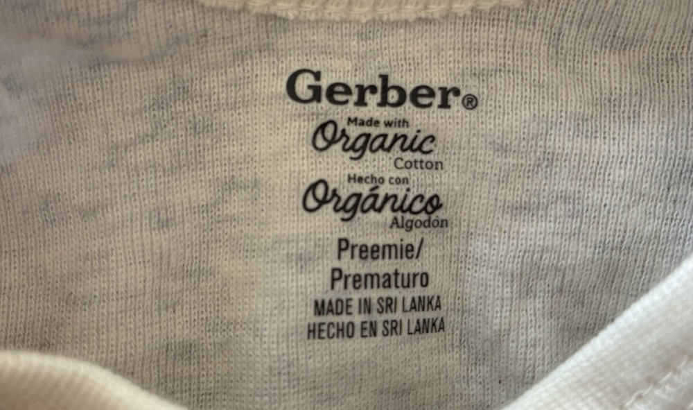 Occasion: Casual Number of Pieces: 1 Piece Pattern: Animal Print Features: Comfort, Easy Care, Lightweight, Organic, Stretch Color: Heather Gray Garment Care: Machine Washable Neckline: Crew Neck Department: Boys Country of Origin: Sri Lanka Size: Preemie Type: One-Piece Season: Fall, Spring, Summer Theme: Animals, Bird, Elephant, Giraffe, Zebra Material: 100% Cotton Character: Boy Style: Onesie Sleeve Length: Short Sleeve Brand: Gerber Closure: Snap Set Includes: Shorts Seller Notes: “New without tags, has never been worn before.”
