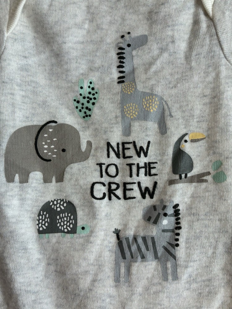 Gerber Baby Boys Animals 100% Cotton Short Sleeve Onesie Heather Gray Preemie. Condition is new without tags. Smoke free, pet free home. Shipped via USPS Ground Advantage.
