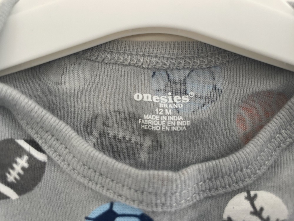 Gerber Baby Boys Colorful Sports Balls 100% Cotton Short Sleeve Onesie Gray 12M. Condition is pre-owned. Smoke free, pet free home. Shipped via USPS Ground Advantage. In very good condition. Free of rips or stains.