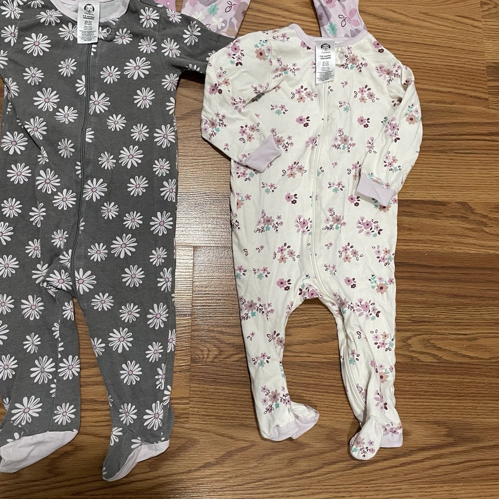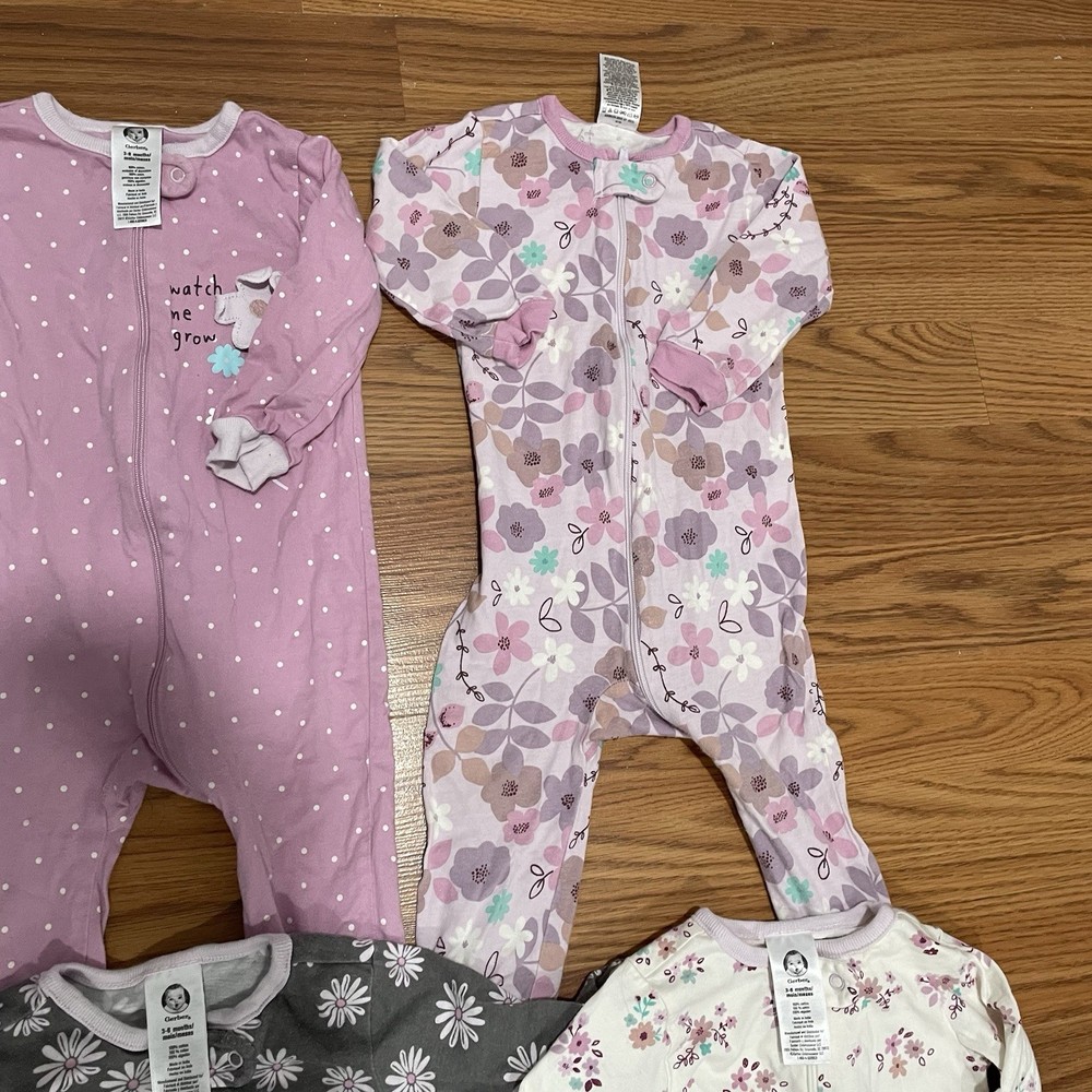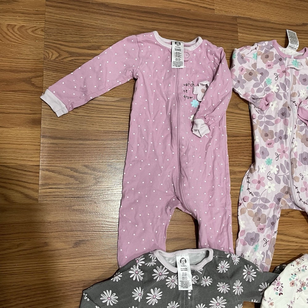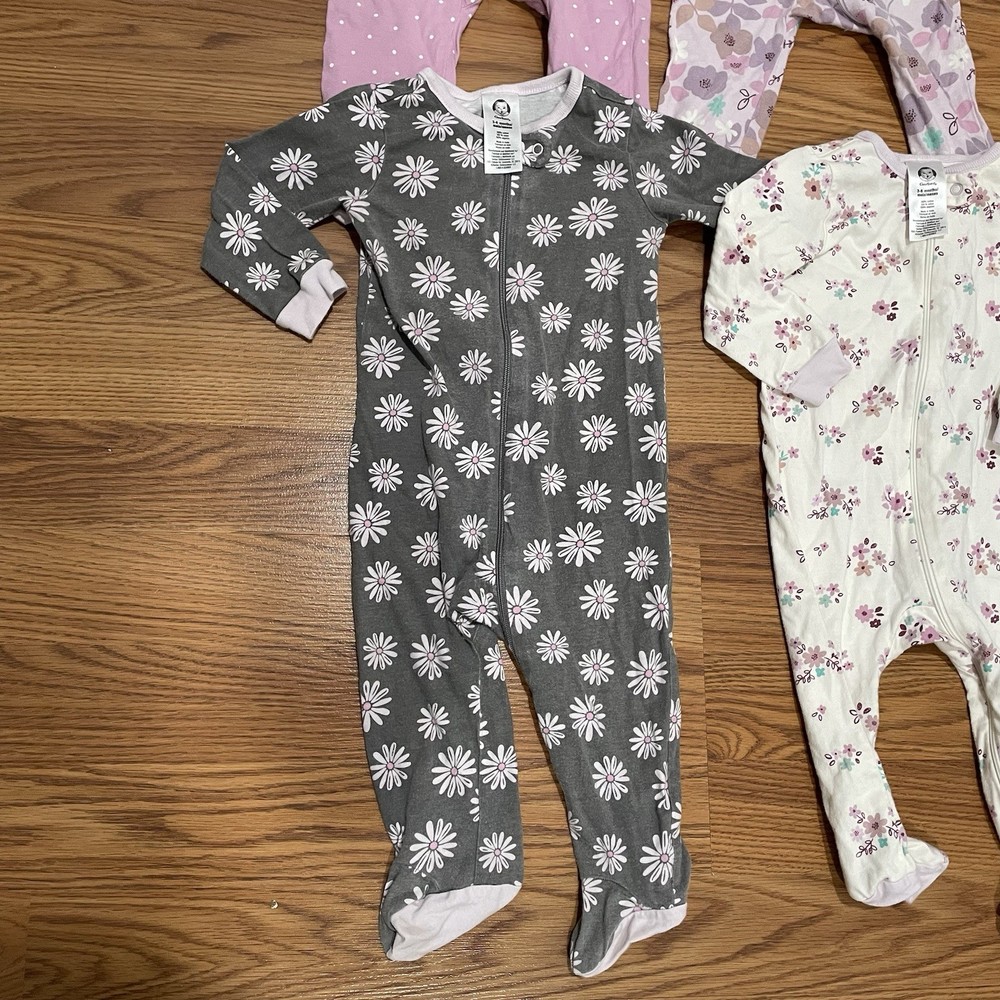Lot Of 4 Girls Footed Pajams Dotted Floral Print Sz 3-6 Months