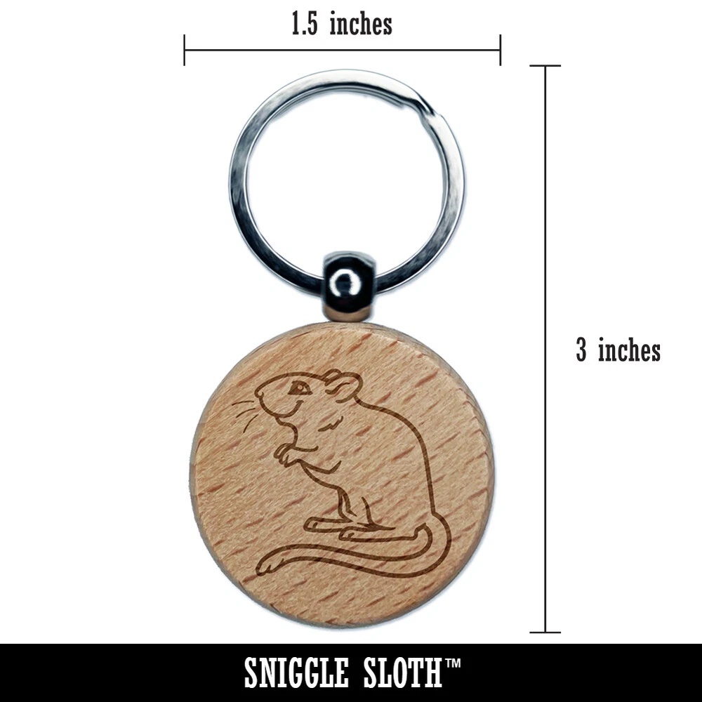 Gerbil Rodent Pet Engraved Wood Round Keychain Tag Charm