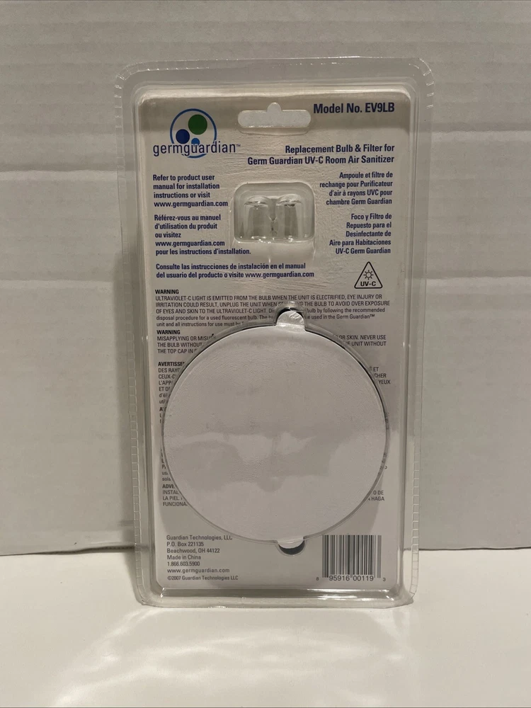 Keep your home clean and healthy with the GermGuardian Genuine Replacement Bulb and Filter. This plug-in air purifier features UV light sterilization and a pre-filter to remove dust, pollen, and other airborne particles. With one cleaning stage and one speed, this unit is perfect for any room in your home. The clear color and sleek design make it a stylish addition to your living space. The GermGuardian EV9LB model weighs 9 lb and was manufactured in 2007. The item comes with no applicable warranty and is powered by electricity. The replacement bulb and filter are genuine GermGuardian products that will help keep your home clean and healthy for years to come.