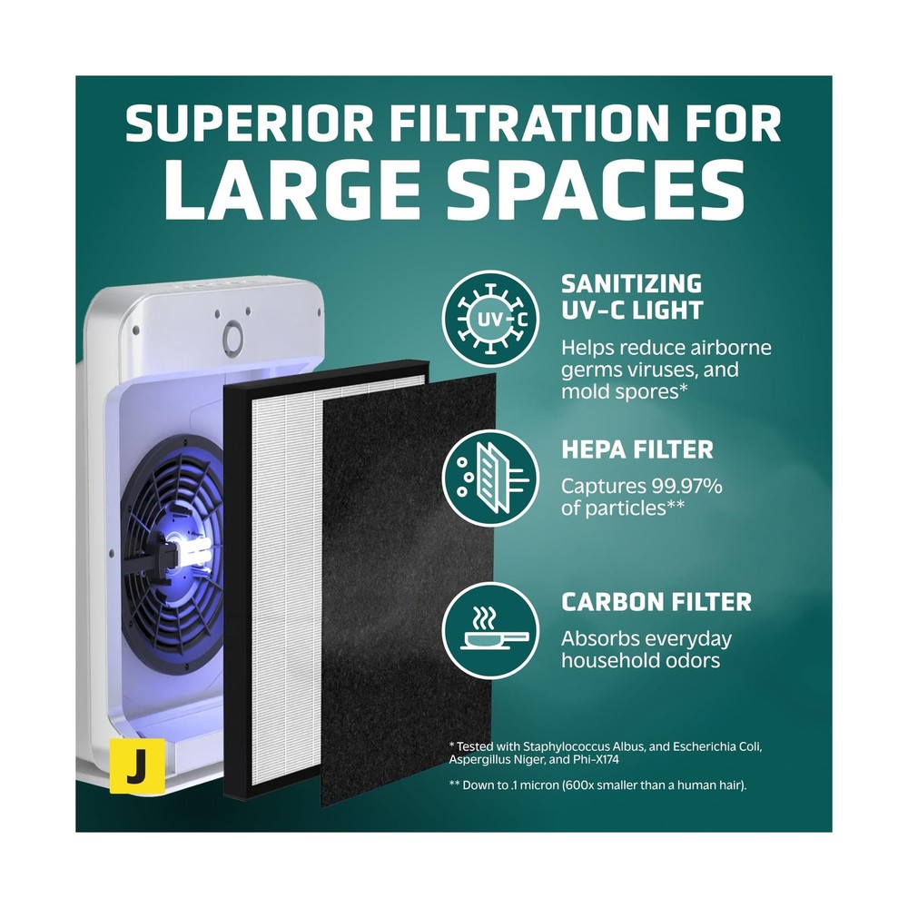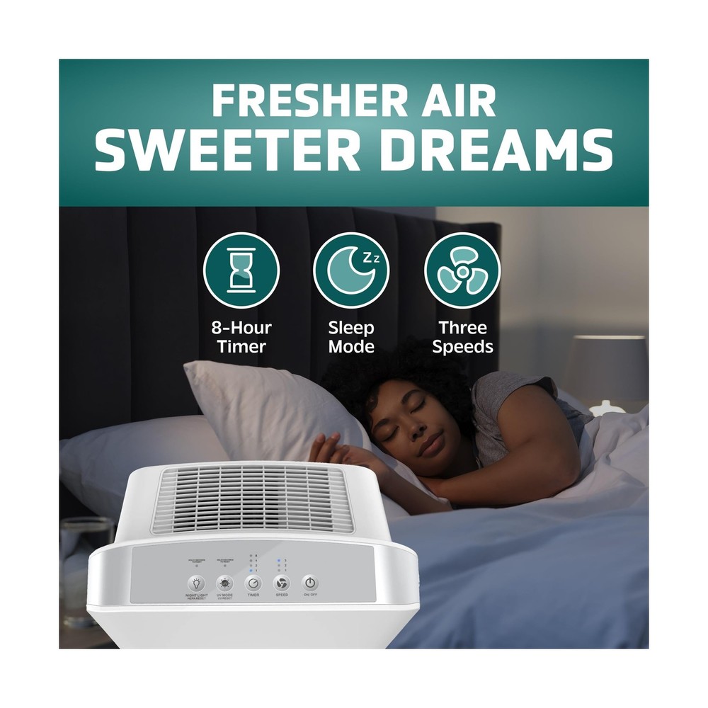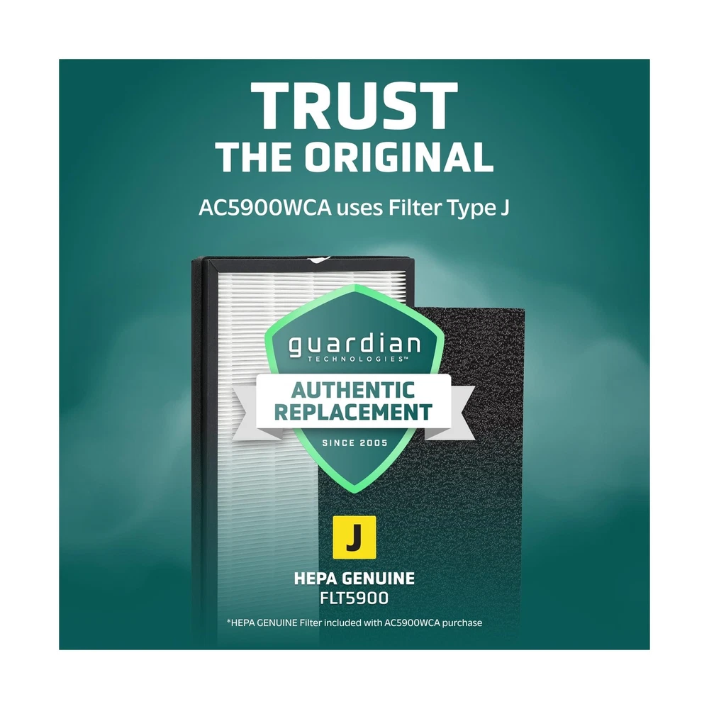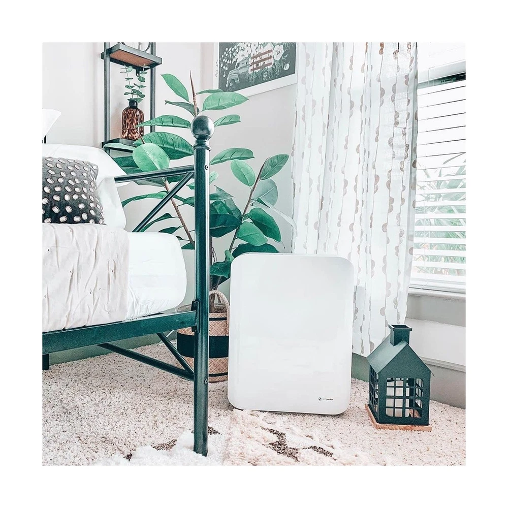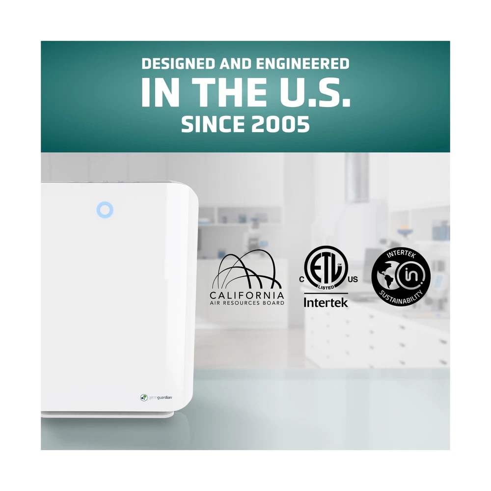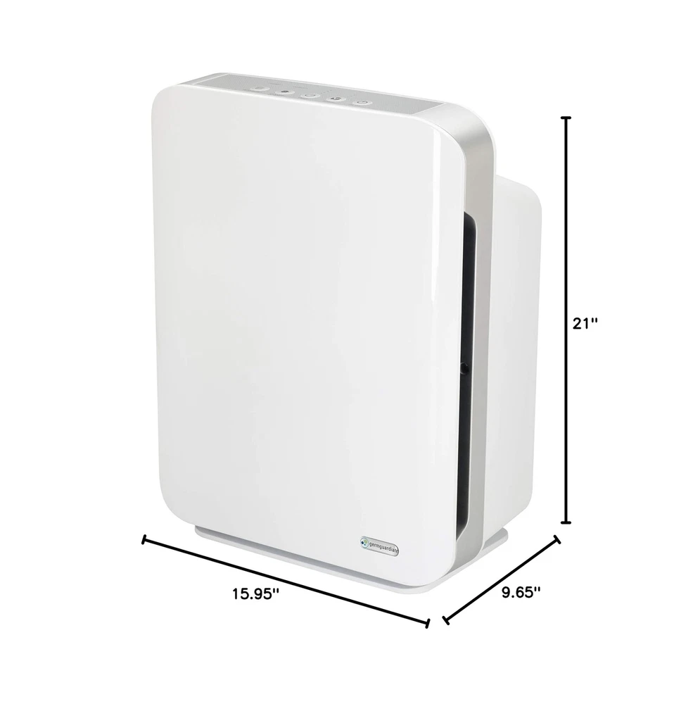 GermGuardian HEPA Air Purifier for Home, Large Rooms up to 1760 Sq. Ft. with HEPA Air Filter & UV-C Light, Zero Ozone Verified, AC5900WCA, White Description This mid-size console air purifier is perfect for those suffering from allergies. With a HEPA filter, it captures 99.97% of dust and allergens as small as 0.1 microns in size! This console air purifier circulates the air 1x per hour in 1763 square foot rooms and 4.8x per hour in 365 sq. ft rooms, ensuring thorough purification. Ideal for large sized rooms such as: dorm rooms, bedrooms, and other living areas! A large carbon filter attacks common household odors including those caused by smoke, cooking, and pets. Additionally, it works to reduce the many VOC's that are emitted by common household products and cleaning chemicals. The UV-C light helps reduce airborne bacteria, viruses, mold spores, and works to reduce volatile organic compounds. Choose from 3 speeds depending on your needs, including a low speed that runs ultra-quiet that is great for light sleepers. It also features a timer that can be set for up to 8 hours. Standing 21" tall, this mid-size console is ideal to use in rooms up to 1760 sq. feet. Tested with Staphylococcus Albus, and Escherichia Coli, Aspergillus Niger, and Phi-X174 Features: HEPA Filter Air Purifier: Equipped with a protective True HEPA (High Efficiency Particulate Air) filter, this large room air purifier efficiently captures 99.97% of particles as small as 0.1 microns, trapping allergens like dust, pollen, and pet dander A Breath of Fresh Air: A must-have air cleaner for homes, apartments, offices, and dorms, this zero-ozone-certified GermGuardian air purifier uses Ultraviolet - C (UV-C) tech to reduce airborne contaminants, so you can enjoy cleaner, fresher air Home-Focused Filtration: An ideal air purifier for bedrooms and living spaces, this powerful home air purifier circulates and filters the air in medium (365 sq. ft.) rooms 4.8x per hour and in large (1,760 sq. ft.) rooms every hour Easy To Operate: A must-have home essential, this air purifier / HEPA room deodorizer features easy-to-use electronic controls, 3 speed settings, an 8-hour auto-off timer, a night light, and a helpful filter change indicator Designed and Independently Tested in the USA: Our units are among the best air purifiers for home use; Designed and engineered in the USA, they are CARB (California Air Resource Board) Certified, ETL Certified and Zero Ozone Verified Product Details: Color: White Brand: GermGuardian Product Dimensions: 9.65"D x 15.95"W x 20.87"H Floor Area: 1760 Square Feet Noise Level: 53 Decibels Color: White Brand: GermGuardian Product Dimensions: 9.65"D x 15.95"W x 20.87"H Floor Area: 1760 Square Feet Noise Level: 53 Decibels Particle Retention Size: 0.1 Micron Controller Type: Manual controls UPC: 817624011509 Contaminant Filtration Capability: True Manufacture Year: 2017 Global Trade Identification Number: 09 Special Feature: HEPA Filtration Manufacturer: Guardian Technologies Filter Class: HEPA, Charcoal Item Weight: 13 pounds Item model number: AC5900WCA Is Discontinued By Manufacturer: No Care instructions: REPLACE FILTER EVERY 6-8 MONTHS DEPENDING ON USE Assembly required: No Number of pieces: 1 Warranty Description: 3-Year Limited Warranty Batteries required: No Included Components: Air Purifier, HEPA Filter, UV-C Bulb Delivery We Do Not Ship Outside of the Continental US. Return Policy All items qualify for returns within 30 days of receipt. Feedback We take our reputation seriously, we buy and sell online, so we understand the value of trust. If you are unsatisfied with your order, please contact us and we will work with you to resolve it to your satisfaction.