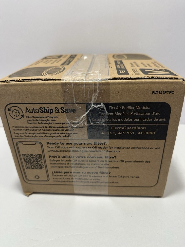 Number of Items: 1 Year Manufactured: 2010 Manufacturer: Guardian Technologies MPN: Does Not Apply Filtration Technology: True HEPA EAN: Does Not Apply Product Dimensions: 6"L x 7.7"W x 7.7"Th Model: FLT151PTPC Item model number: FLT151PTPC Brand: GermGuardian Item Length: 1 Batteries required: No Type: Filter gtin13: Does Not Apply Color: Black/Yellow Compatible Devices: Air Purifier, AC151, AP3151, AC3000 UPC: 817624013787 Product Grade: new