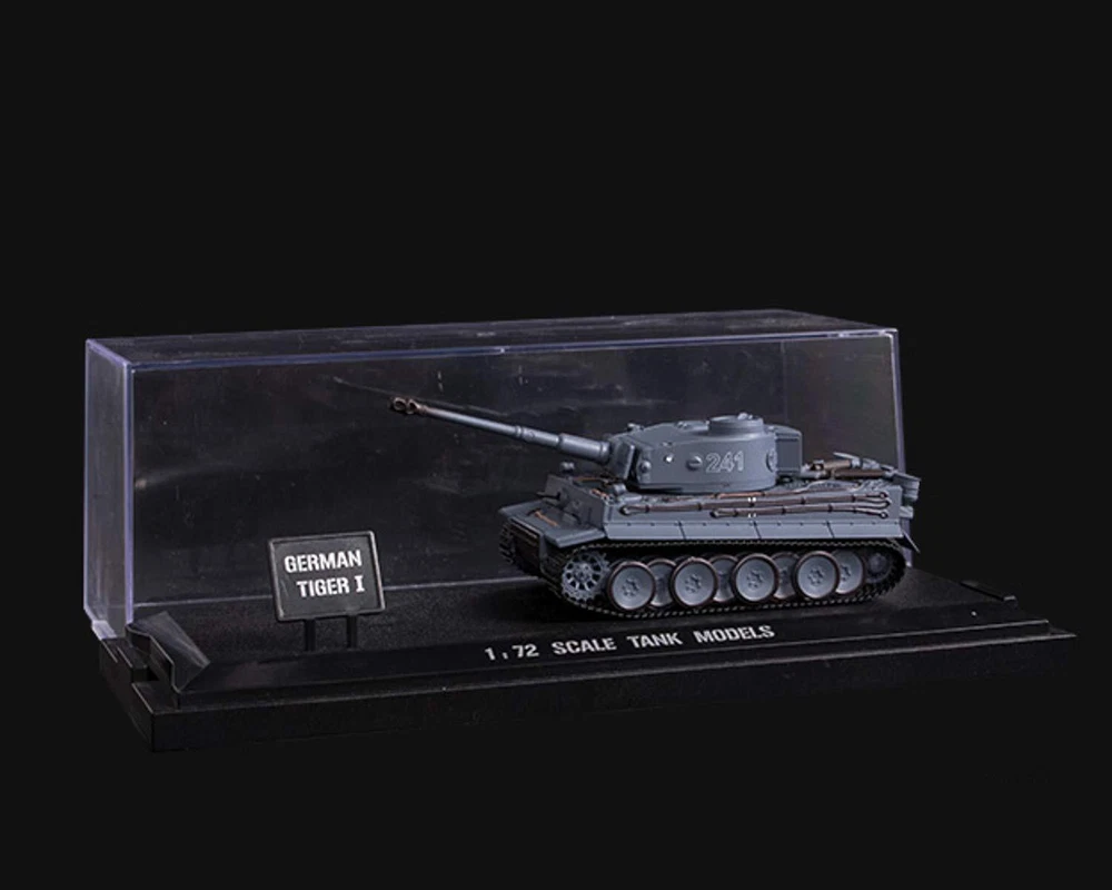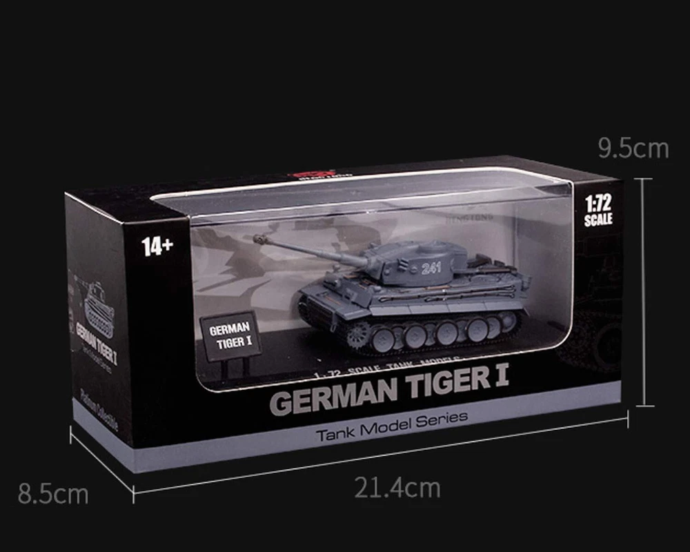 German Tiger I Tank Diecast 1/72 Scale Showcase Collection Action Model - Replica Die-cast Model of German Tiger I Tank - Scale: 1/72 - Showcase included - Rotatable turret, movable gun, rubber track - Tank Dimension: 5.5"L x 2"W x 1.5"H - Showcase Dimension: 8.75"L x 3.25"W x 3.75"H Replica Die-cast Model of German Tiger I Tank Rotatable turret, movable gun, rubber track Scale: 1/72, Showcase included Tank Dimension: 5.5"L x 2"W x 1.5"H; Showcase Dimension: 8.75"L x 3.25"W x 3.75"H is a registered trademark