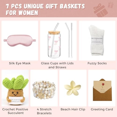Return Policy Fast Delivery Trusted seller Get Well Soon Gift Baskets for Women - Unique Birthday Gifts Basket for Sister, Mom, Thinking of You Gifts After Surgery Recovery, Self Care Package for Women Product Description UNIQUE SELF CARE GIFTS FOR WOMEN & TEEN GIRLS: Show how much you care with this beautifully curated 7-piece gift box. Perfect for birthdays or just because, it’s an ideal gift baskets for moms, sisters, daughters, best friends, coworkers, and more. Great as get well gifts, thinking of you gifts, care package for women and thank you gifts that truly make her feel valued GET WELL SOON GIFTS FOR WOMEN: This cozy self-care package is designed to comfort women facing illness, surgery, or tough times. This get well soon gift basket includes 1* 16oz glass cup with bamboo lid and straw, 1* silk eye mask, 1* pair of ultra-soft fuzzy socks, 4* stylish boho elastic bracelets, 1* delicate flower-shaped hair clip, 1* handmade crochet succulent, and 1* heartfelt greeting card.it’s the perfect way to send support and encouragement when she needs it most CARE PACKAGE FOR WOMEN FOR MANY OCCASIONS: Whether she’s recovering from surgery, battling illness, or just needs a little pick-me-up, this gift box offers warmth and motivation. Ideal as get well soon gifts, cancer care gifts, surgery recovery gifts, feel better gifts, cheer-up gifts, or thoughtful presents for birthdays, Mother’s Day, and Christmas. Show her she’s loved and supported every step of the way ENCOURAGEMENT CROCHET SUCCULENT: Handmade with soft, vibrant yarn, this crochet succulent (3.9" L x 4.3" H) includes an affirmation card that reads, “Life would succ without you.” It’s a meaningful encouragement gift for women, as well as an inspirational gift and motivational gift, bringing joy and positivity every time she sees it A HEARTWARMING THINKING OF YOU GIFT: Designed to lift spirits during challenging times, this heartfelt thinking of you gift set features a soothing silk sleep mask, cozy socks, and a charming glass cup with bamboo lid and straw for her favorite drinks. Each item carries your love and care, gently reminding her that she’s in your thoughts and deeply cared for Shipping Returns Payment Shipping Shipping is FREE to all addresses other than APO/PO boxes in the lower 48 states. All our stock ships from US-based warehouses. Shipped via USPS or UPS (depending on location and package weight) Unless stated otherwise, all orders will ship within 24-72 hours of your payment being processed. Check our feedback to see the great reviews of FAST shipping we offer. Returns Seller does not accept returns Payment We currently accept payment via eBay managed payments only. Once payment is cleared, we will dispatch your shipment within 1-3 business days. Please refer to the "Shipping" tab for more information regarding shipping speed to your destination.
