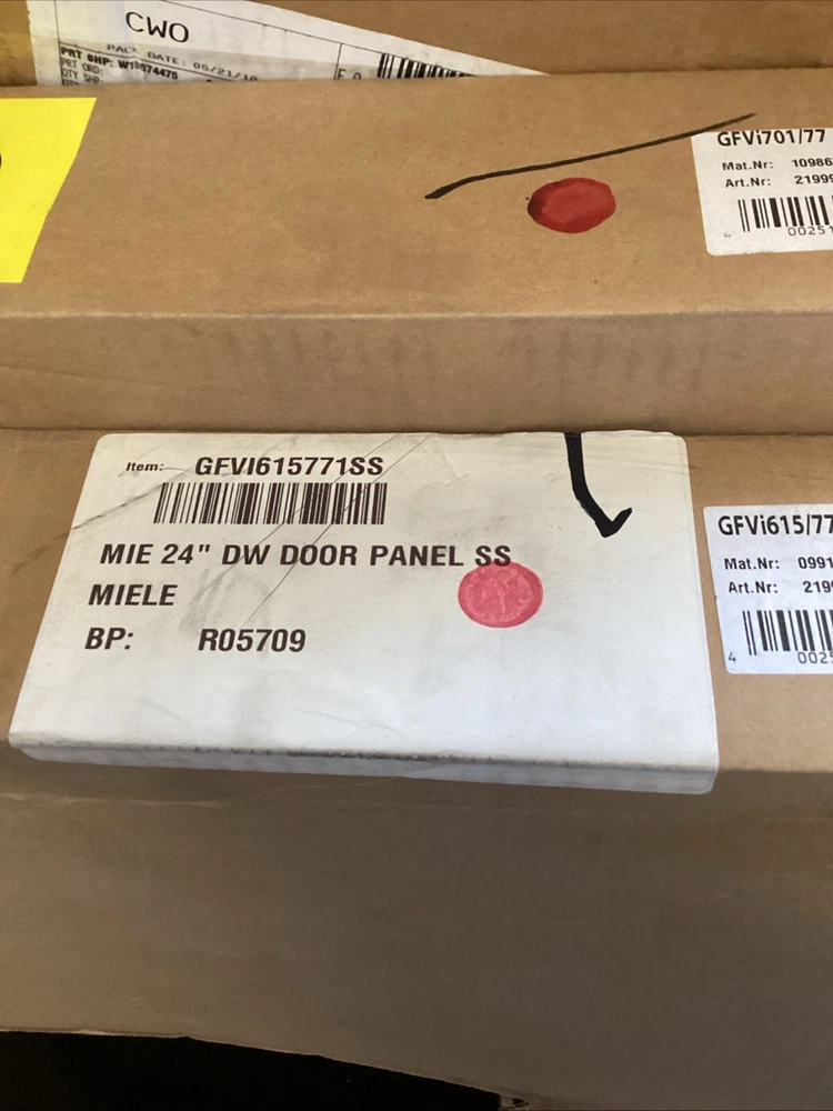 The "Gfv1615771ss 24” Miele Dishwasher Door Panel" is a stainless steel panel designed specifically for the Miele Gfv1615771ss dishwasher model. This panel is a replacement or additional part suitable for use with Miele dishwashers, enhancing the aesthetic appeal of the appliance with its sleek stainless steel material. The panel is intended to be installed on the front of the dishwasher, providing a seamless and modern look to the kitchen environment.