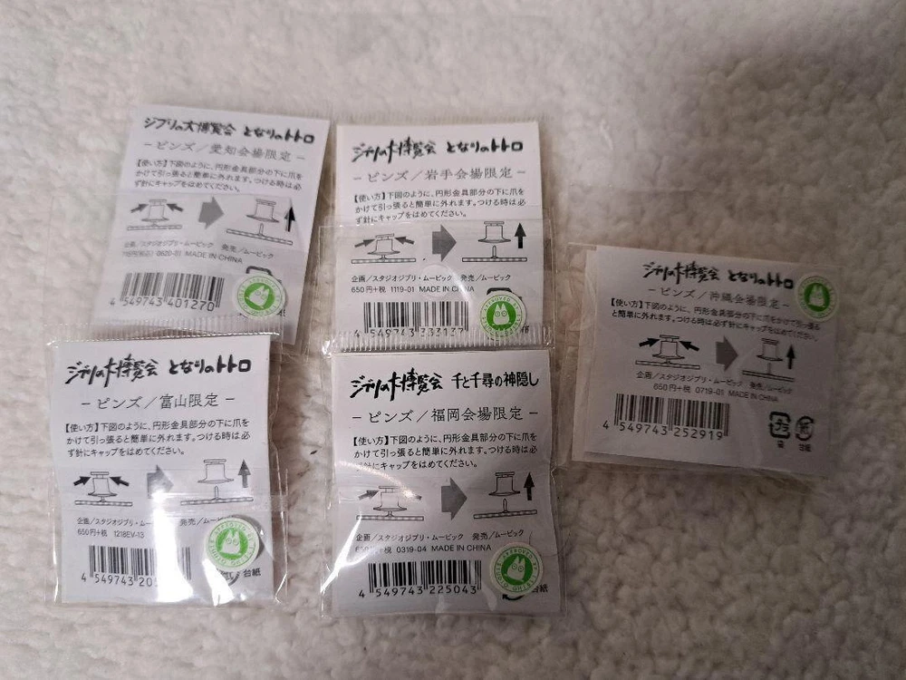 Item Title Ghibli Expo Local Pin Badge Pins Set Of 5 Payment Supports managed payments Please pay within 5 days after auction is finished. About Us We are located in Japan. It's our pleasure to make you happy by proposing our recommend item. If you have any questions or request about items, please feel free to ask us. International Buyers - Please Note: -Import duties, taxes, and charges are not included in the item price or shipping charges. These charges are the buyer's responsibility. -Please check with your country's customs office to determine what these additional costs will be prior to bidding/buying. -These charges are normally collected by the delivering freight (shipping) company or when you pick the item up - do not confuse them for additional shipping charges. -We do not mark merchandise values below value or mark items as - gifts - The US and International government regulations prohibit such behavior. Thank you for your understanding.