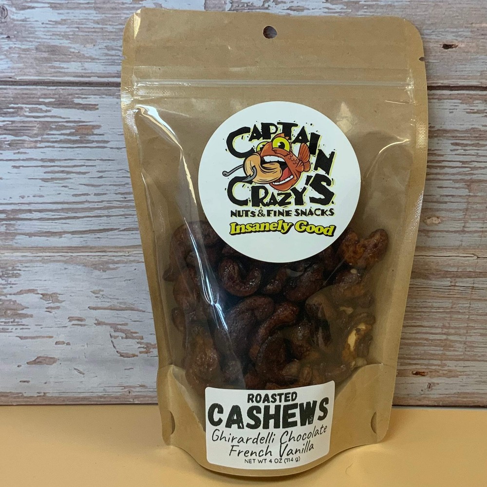 ROASTED CASHEWS Ghirardelli Chocolate French Vanilla Get ready for a taste sensation with NEW! Ghirardelli Chocolate French Vanilla Roasted Cashews. Indulge in the rich and creamy flavors of pure Ghirardelli chocolate and natural French vanilla, perfectly paired with the crunch of roasted cashews. With a convenient resealable bag, you can enjoy these delicious treats anytime, anywhere! | Whole Large Cashews | Indulgent Ghirardelli Chocolate | Natural French Vanilla | Dry Roasted - NO Oil and NO Frying | Flavor Infused - NO Sticky Candy Coating Captain Crazy's Ghirardelli Chocolate French Vanilla Roasted Cashews have all sorts of uses:~Munch On Them Right from the Bag~Elevate Salads~Create Decadent Desserts and Sweet Treats Ingredients: raw cashews, Ghirardelli chocolate and cocoa [sugar, cocoa processed with alkali, unsweetened chocolate, soy lecithin, vanilla extract], natural French vanilla powder [dextrose, natural flavors]. Allergens: Contains tree nuts (cashews). Packaged in the same facility as peanuts, tree nuts, wheat, soy, sesame and milk products. Handcrafted in Lake County FL. Shipping available throughout the US. Comes in a resealable stand-up bag for freshness and convenient, on-the-go snacking. Net weight 4 ounces. ROASTED CASHEWS Ghirardelli Chocolate French Vanilla Get ready for a taste sensation with NEW! Ghirardelli Chocolate French Vanilla Roasted Cashews. Indulge in the rich and creamy flavors of pure Ghirardelli chocolate and natural French vanilla, perfectly paired with the crunch of roasted cashews. With a convenient resealable bag, you can enjoy these delicious treats anytime, anywhere! | Whole Large Cashews | Indulgent Ghirardelli Chocolate | Natural French Vanilla | Dry Roasted - NO Oil and NO Frying | Flavor Infuséd - NO Sticky Candy Coating Captain Crazy's Ghirardelli Chocolate French Vanilla Roasted Cashews have all sorts of uses: ~Munch On Them Right from the Bag ~Elevate Salads ~Create Decadent Desserts and Sweet Treats Ingredients: raw cashews , Ghirardelli chocolate and cocoa [sugar, cocoa processed with alkali, unsweetened chocolate, soy lecithin, vanilla extract], natural French vanilla powder [dextrose, natural flavors]. Allergens: Contains tree nuts (cashews). Packaged in the same facility as peanuts, tree nuts, wheat, soy, sesame and milk products. Handcrafted in Lake County FL. Shipping available throughout the US. Comes in a resealable stand-up bag for freshness and convenient, on-the-go snacking. Net weight 4 ounces. × × × × × × × × × Shipping info Click the Shipping & Payments tab above the listing description for more info FREE Shipping Click the Shipping & Payments tab above the listing description for more info! Additional delivery notes PICK UP OPTION Sorry, our items are NOT available for pick-up. PAYMENT Immediate payment is required upon selecting "Buy It Now" or upon checking out through the cart. We accept payment via U.S. PayPal accounts and all Major Credit Cards, Debit Cards & Google Pay. We are legally required to collect sales tax in those states and localities where we maintain a physical presence (nexus). The applicable amount of sales tax charged to an order will be calculated based on the shipment destination's state and local sales tax laws. Thank you for shopping with us on eBay! Additional Information No additional information at this time Ask seller a question You might also like NUTTY SNACK MIX Sweet and Spicy ROASTED PECANS Maple Brown Sugar ROASTED PECANS Everything Bagel ROASTED PECANS Ghirardelli Chocolate Espresso Contact To contact our Customer Service Team, simply click the button here and our Customer Service team will be happy to assist. Ask seller a question © Captain Crazy's Nuts and Fine Snacks Shipping & Payments Shipping is FREE for this item Payment Accepted Payment Methods Immediate payment is required upon selecting "Buy It Now" or upon checking out through the cart. We accept payment via U.S. PayPal accounts and all Major Credit Cards, Debit Cards & Google Pay. We are legally required to collect sales tax in those states and localities where we maintain a physical presence (nexus). The applicable amount of sales tax charged to an order will be calculated based on the shipment destination's state and local sales tax laws. Thank you for shopping with us on eBay! Returns Returns are accepted Items must be returned within 30 days of the auction ending Buyer will pay for return shipping. eBay integration by