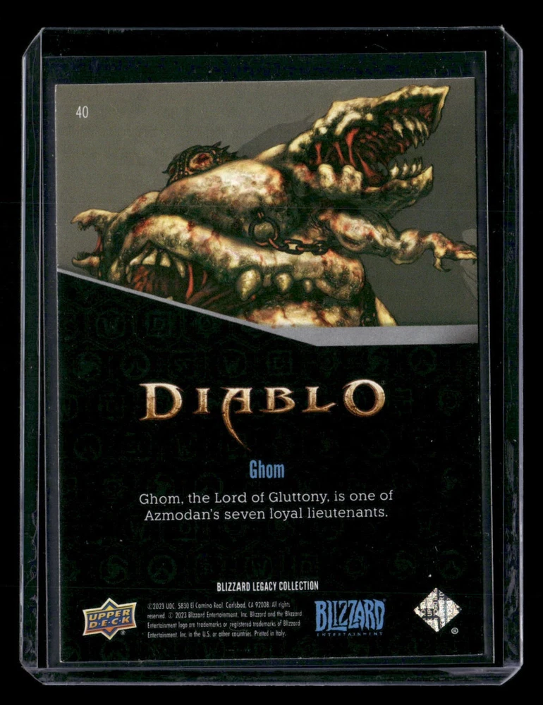 Type: Non-Sport Trading Card Autographed: No Franchise: NON_SPORT Set: 2023 Upper Deck Blizzard Legacy Collection Season: 2023 Player/Athlete: Ghom Graded: No Year Manufactured: 2023 Card Number: 40
