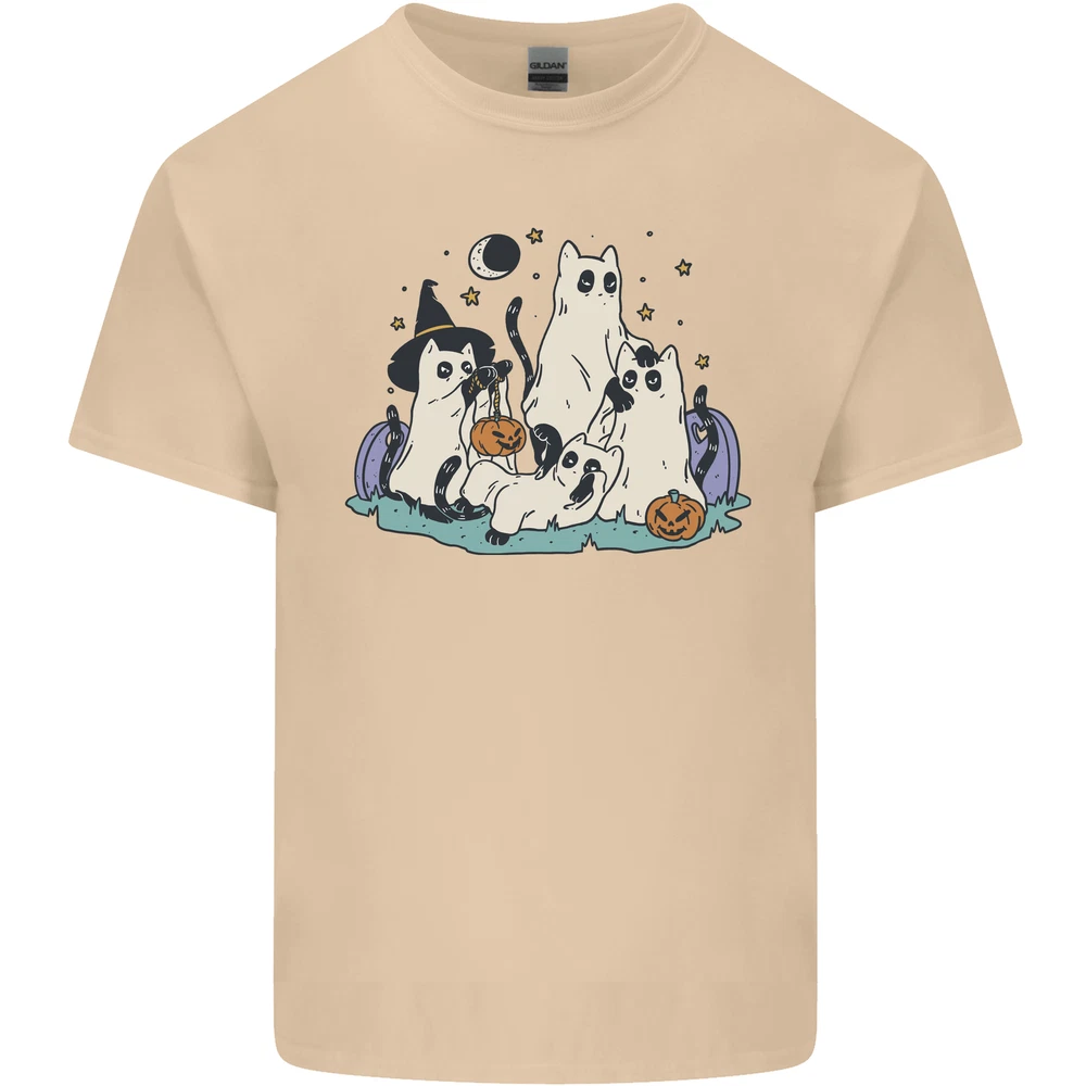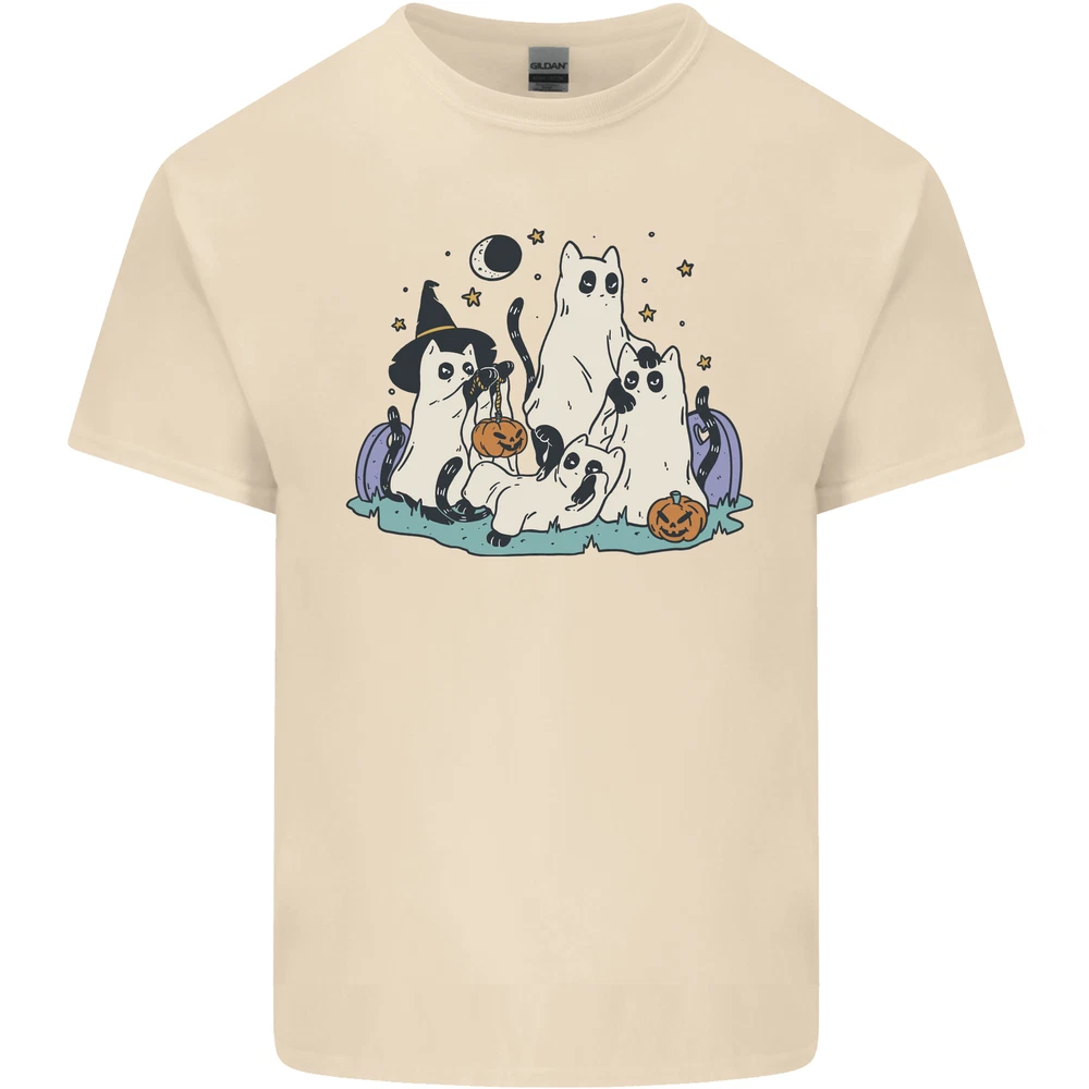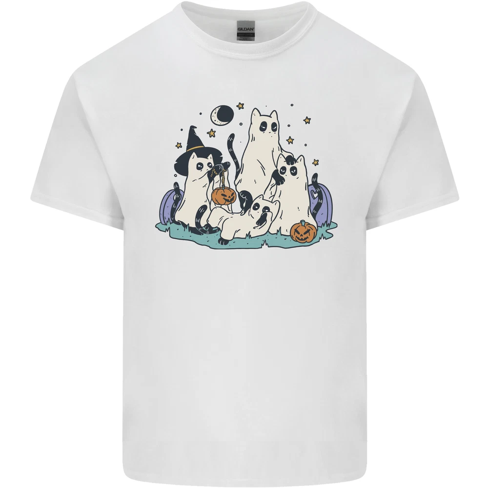 Ghost Cats Cute Halloween Mens Cotton T-Shirt Tee Top