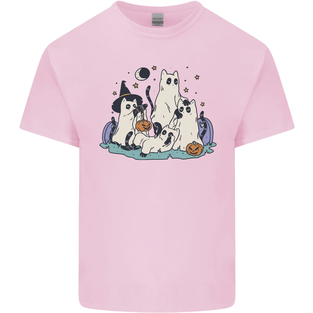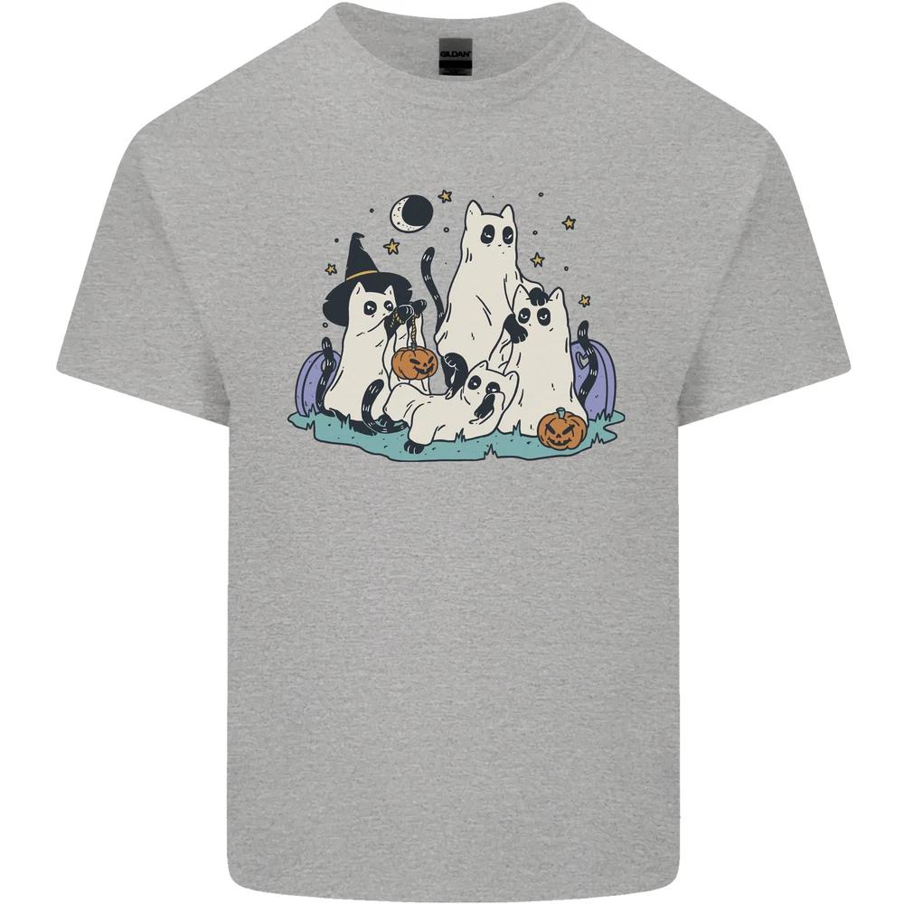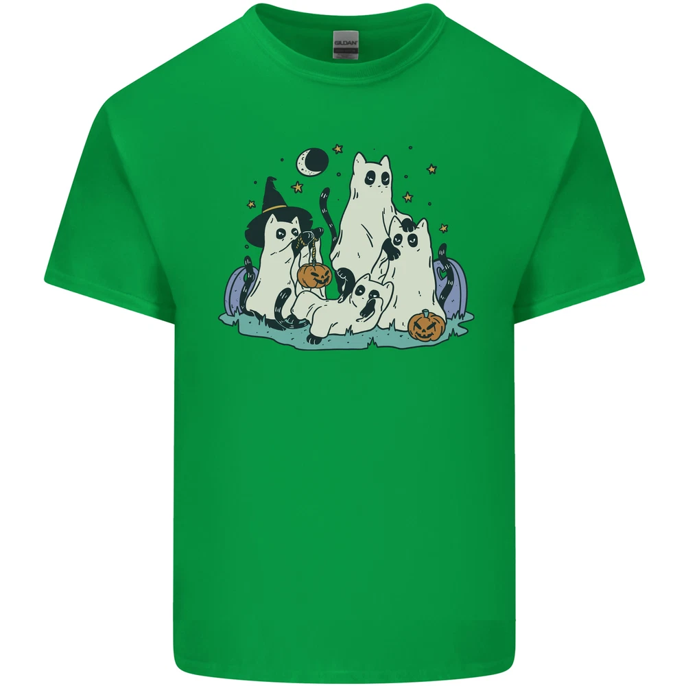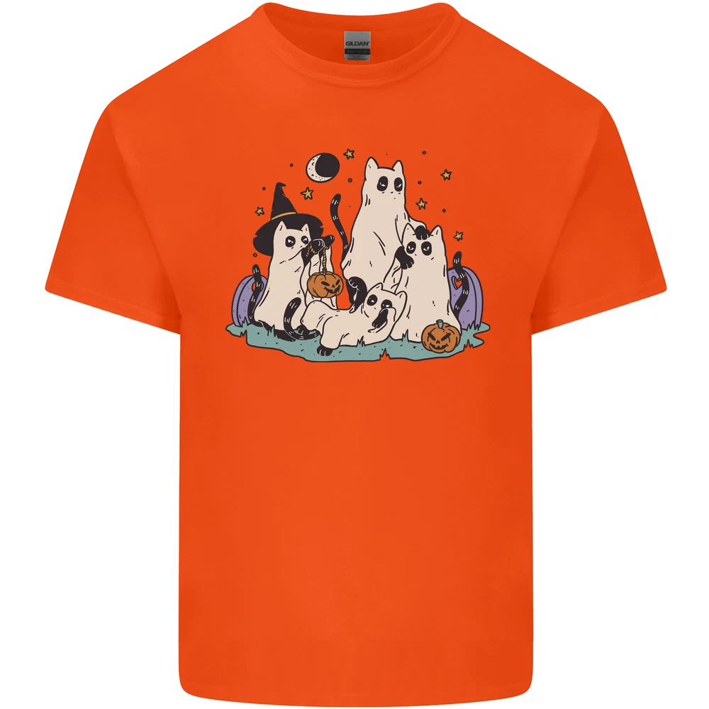 Ghost Cats Cute Halloween Mens Cotton T-Shirt Tee Top