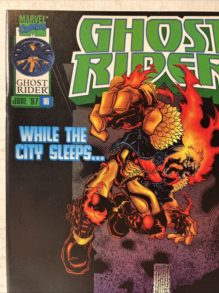 Low Print High Grade 9.6 Ghost Rider #86 is a highly sought-after comic book from Marvel Comics, published in June 1997. This issue features a thrilling storyline with various artists and writers, including Pop Mhan, Andrew Pepoy, Jason Martin, Ivan Velez Jr., and Brian Buccellato. The character ensemble includes Jim Palmetto, Francis Ketch, Damage Control Kirk Eden, Stacy Dolan, Juanita Candido, Blackheart, Toother, Black Rose, Carlie Colon, Johnny Blaze, Scarecrow, and Jennifer Kale, adding to the excitement and adventure in each page. The cover artists for this issue are Pop Mhan and Jason Martin, making it a must-have for collectors and fans. Ghost Rider #86 is a part of the Modern Age era, falling under the genres of superheroes and fantasy. This US comic book is perfect for anyone who loves the tradition of comic book collecting. NM+ 9.6 Bagged and boarded Minor