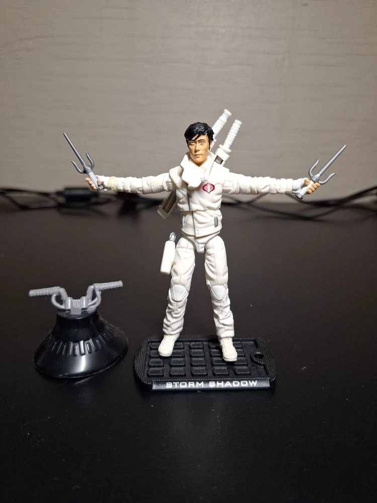 TV Show: G.I. Joe Vintage: No gtin13: 653569403098 Movie: G.I. Joe: The Rise of Cobra Items Included: Gun, Sword, Mixed Lot, Knife Series: G.I. Joe Featured Person/Artist: Seal, Common Original/Licensed Reproduction: Original Animal Species: Snake, Human Franchise: G.I. Joe Theme: Military & Adventure Age Level: 5-7 Years Convention/Event: San Diego Comic Con Sport: Mixed Martial Arts, Boxing Character: Storm Shadow Time Period Manufactured: 2000-2009 UPC: 653569403098 Animation Studio: Sunbow Productions Brand: Hasbro MPN: Unknown Country/Region of Manufacture: China Material: Plastic Signed: No Type: Action Figure Color: White Transformer Faction: N/A Model: Storm Shadow Features: Adjustable, Fully Jointed Year Manufactured: 2009