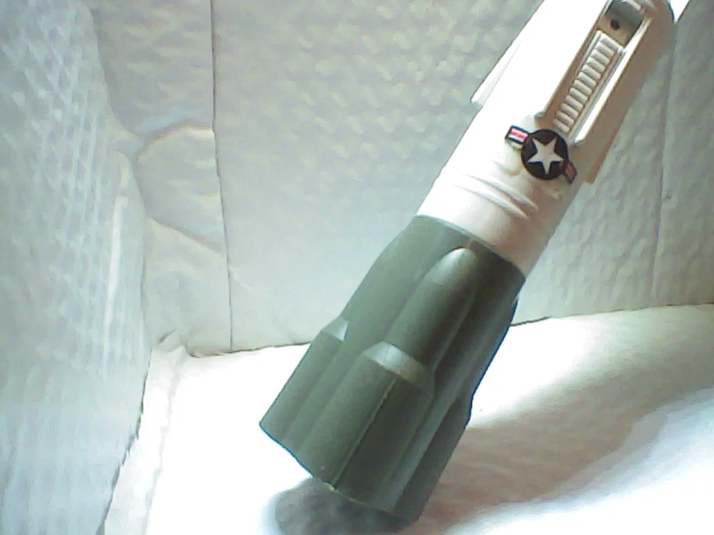 One large rolling thunder missile / glass in very nice shape good sticker placement which is seeing pics is what you get thank you for looking you will receive it in two parts had to take off bottom booster for shipping all tabs good no stress should easily go back together
