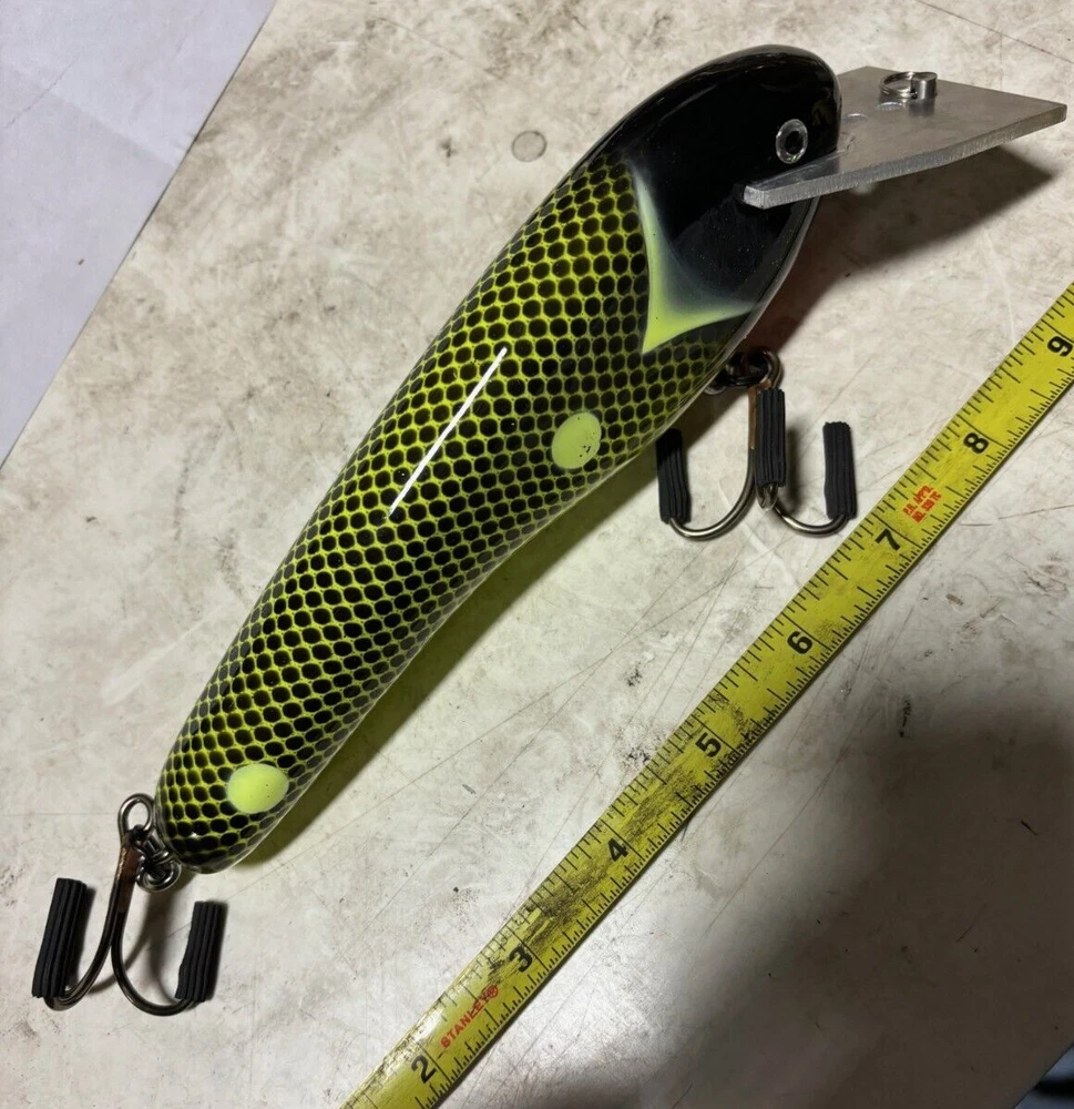 READ CAREFULLY. I have 100% positive feedback for a reason. I make sure ALL my customers are happy. This lure is 100% fully returnable if you don't like it. Details for the lure are below: The wood body of this lure is about 8" long. It has an aluminum bill. THE LURE IS GUARANTEED FOR LIFE. READ THAT AGAIN. THE WARRANTY DOES NOT INCLUDE HOOK RASH, EVENTUAL PAINT DAMAGE AFTER DOZENS OF FISH BUT IF THE LURE EVER BREAKS IT WILL BE REPLACED FOR FREE . JUST SEND THE DEFECTIVE ONE BACK AND WE WILL REPLACE WITH THE SAME COLOR, OR IF NOT IN STOCK THE CLOSEST COLOR WE HAVE. THE LURE IS HAND CARVED CEDAR. IT WON'T LEAK, RETAIN WATER, ETC. THIS BAIT IS NOT A MATTLOCK, HOWEVER, IT'S DESIGN IS VERY SIMILAR. IT HAS 3 LOCATIONS WHERE YOU CAN INSTALL THE LINE TIE. IT SHIPS IN THE DEEPEST DIVING POSITION OF THE 3. IN THIS LOCATION, DEPENDING ON VARIOUS FACTORS, THE BAIT WILL DIVE DOWN AROUND 10 FEET. EVERYONE LIKES DIFFERENT STYLE HOOKS SO HOOKS ARE NOT INCLUDED. JUST INSTALL 6/0 TO 7/0 TREBLES OF YOUR LIKING. MY GOAL IS TO PROVIDE INCREDIBLE LURES AT EVEN MORE INCREDIBLE PRICING. THAT IS WHY THIS LURE IS NOT $100 EACH. HAVE YOU ALWAYS WANTED ONE OF THESE BUT DIDN'T WANT TO TAKE OUT A HOME EQUITY LOAN TO GET ONE? WELL, HERE YOU GO!!! Time to unload some incredible lures!! Good luck and Happy Bidding!! On Mar-02-21 at 17:49:41 PST, seller added the following information: ***Shipping policy - I combine shipping. Shipping total is calculated by taking the highest shipping cost plus $3 for each additional item won. So, if the highest shipping is $6.99 and you win 4 listings, then the total charged will be $6.99+3+3+3=$15.99. ***I ship to the USA only. Please don't bid if you are not shipping to the USA. ***If you are going to place many orders, do not pay and then complain that I did not combine shipping since I ship as very quickly after items are paid for. GOOD LUCK, and happy bidding!! I offer only the highest quality items at dirt cheap pricing.