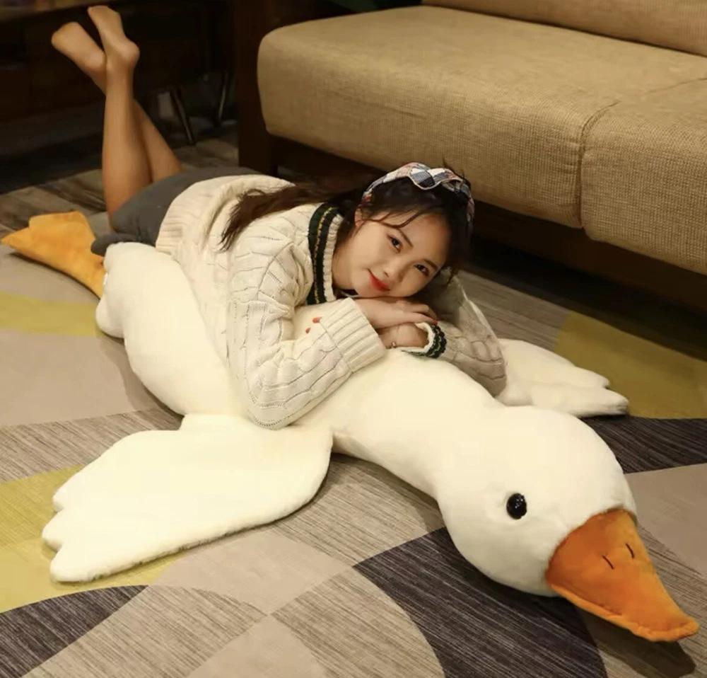 This plush toy features a giant white duck/goose design with big wings, making it soft and cuddly. Suitable for children aged 2 years and up, this unisex toy has an animal theme and is made in China. Perfect for snuggling and playtime, this plushie is sure to be a favorite companion for little ones.