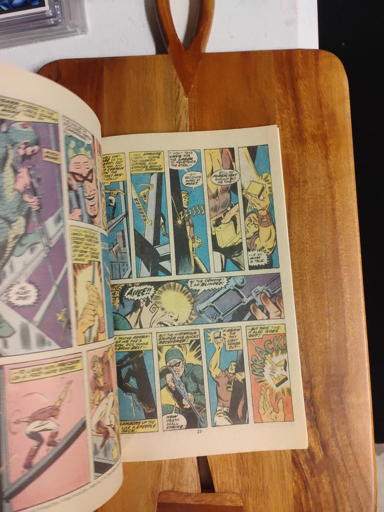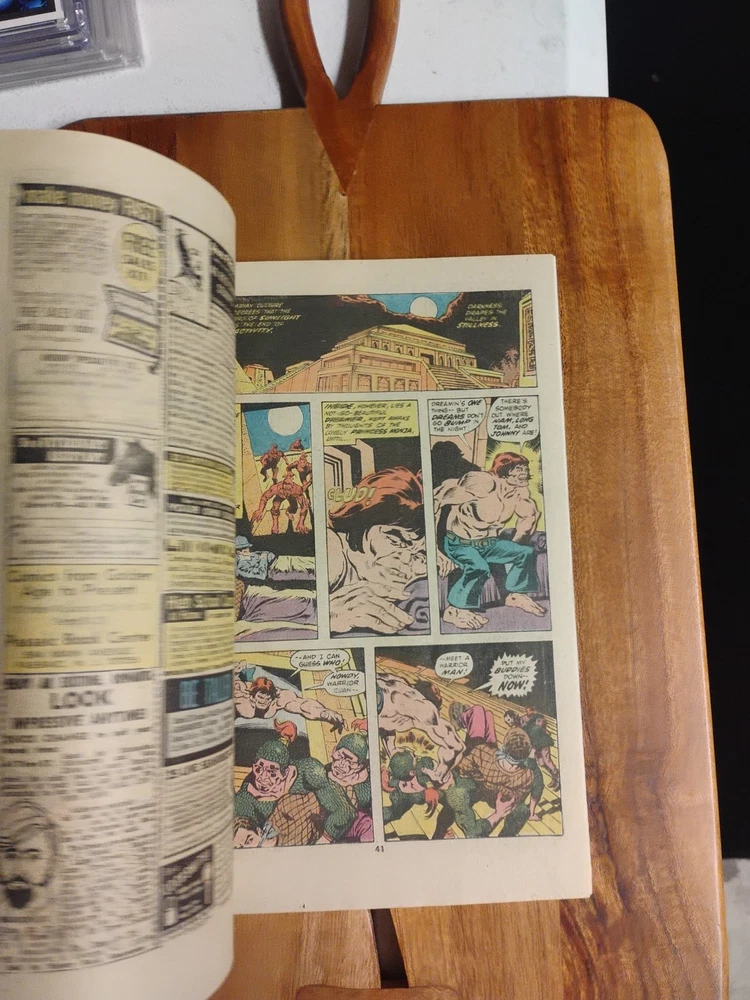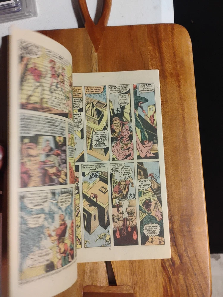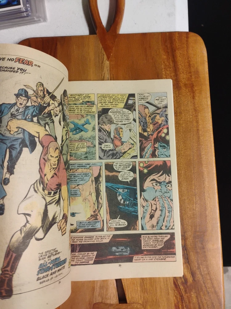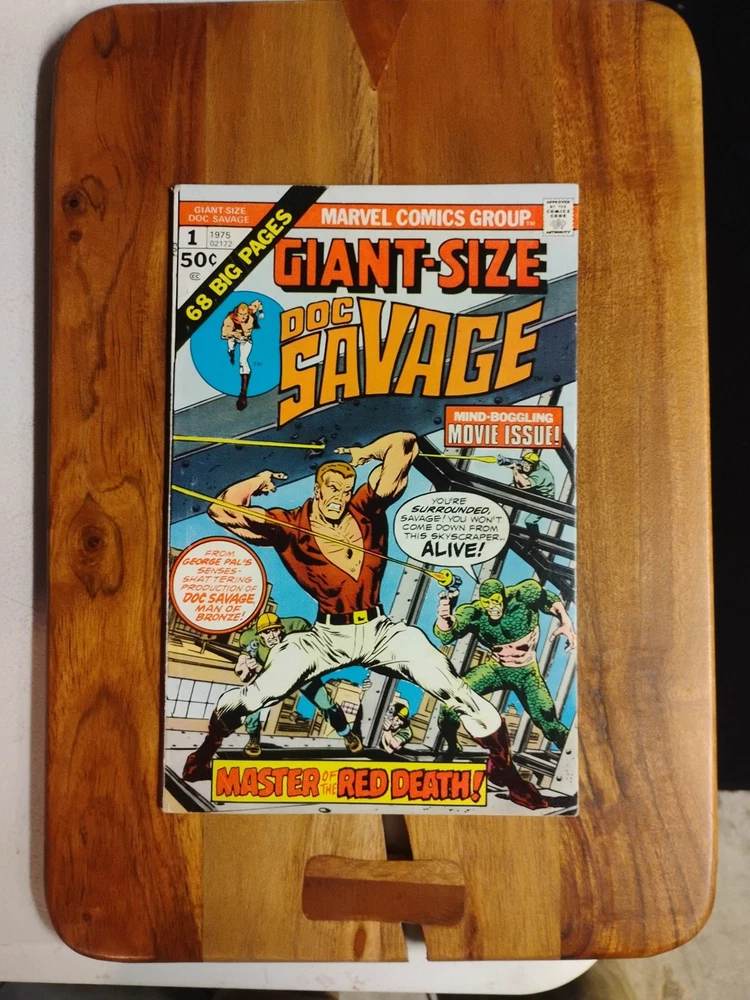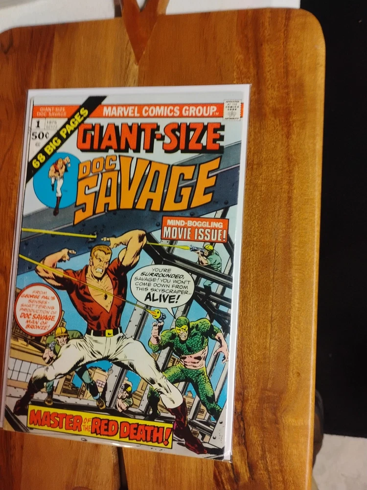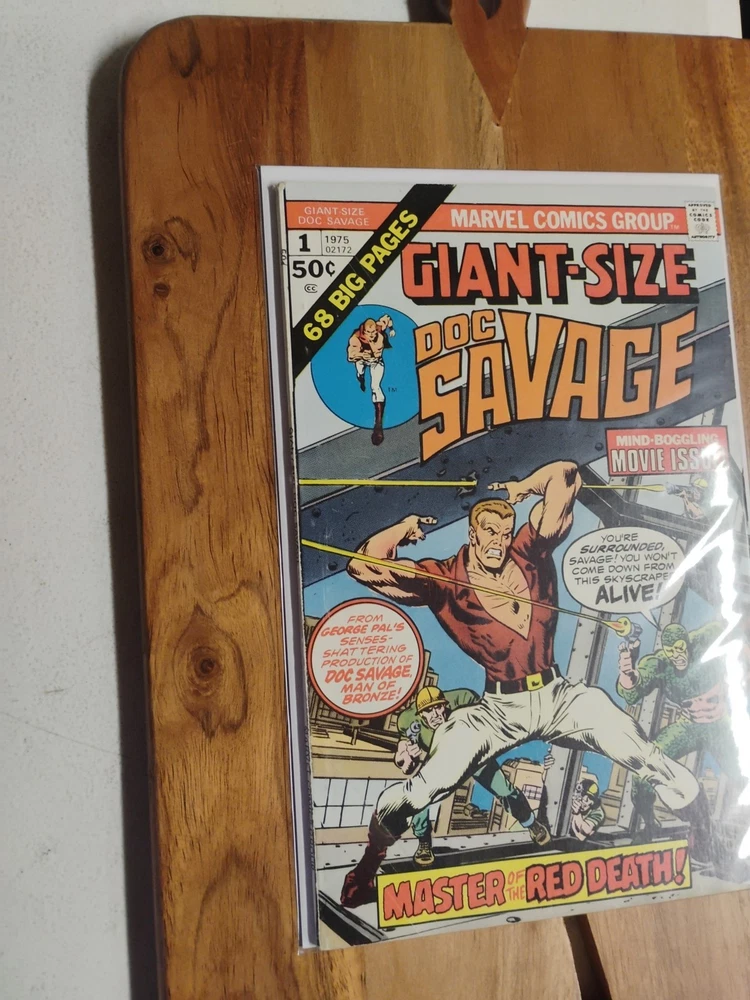 This is a rare and valuable comic book from Marvel Comics, published in 1975. It features the Giant-Size Doc Savage in his first issue, alongside other characters like William Harper Littlejohn (Johnny), Doc Savage, John Renwick (Renny), The Werewolf, Tiny (Indian Servent), Senorita Cere Oveja, El Rabanos, Senor Oveja, Patricia Savage, Son of the Feathered Serpent, Warrior of the Son of the Feathered Serpent, Clark Savage, Jr (Doc Savage), Clark Savage, Jr. (Doc Savage), Thomas J. Roberts (Long Tom), Fabulous Five: Andrew Blodgett Mayfair (Monk), Fabulous Five Andrew Blodgett Mayfair (Monk), Theodore Marley Brooks (Ham), and many others. The comic book is written by renowned artists and writers such as Roy Thomas, Ernie Chan, Michele Wolfman, Steve Englehart, Jim Mooney, Ross Andru, and John Buscema, among others. It is in English language and belongs to the Bronze Age (1970-83) era of US Comics. This collectible comic book is perfect for fans of superheroes and adventure genres, and would make a great addition to