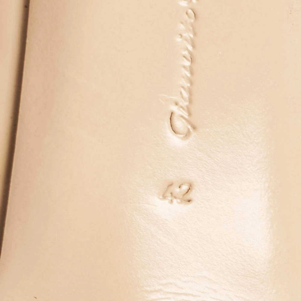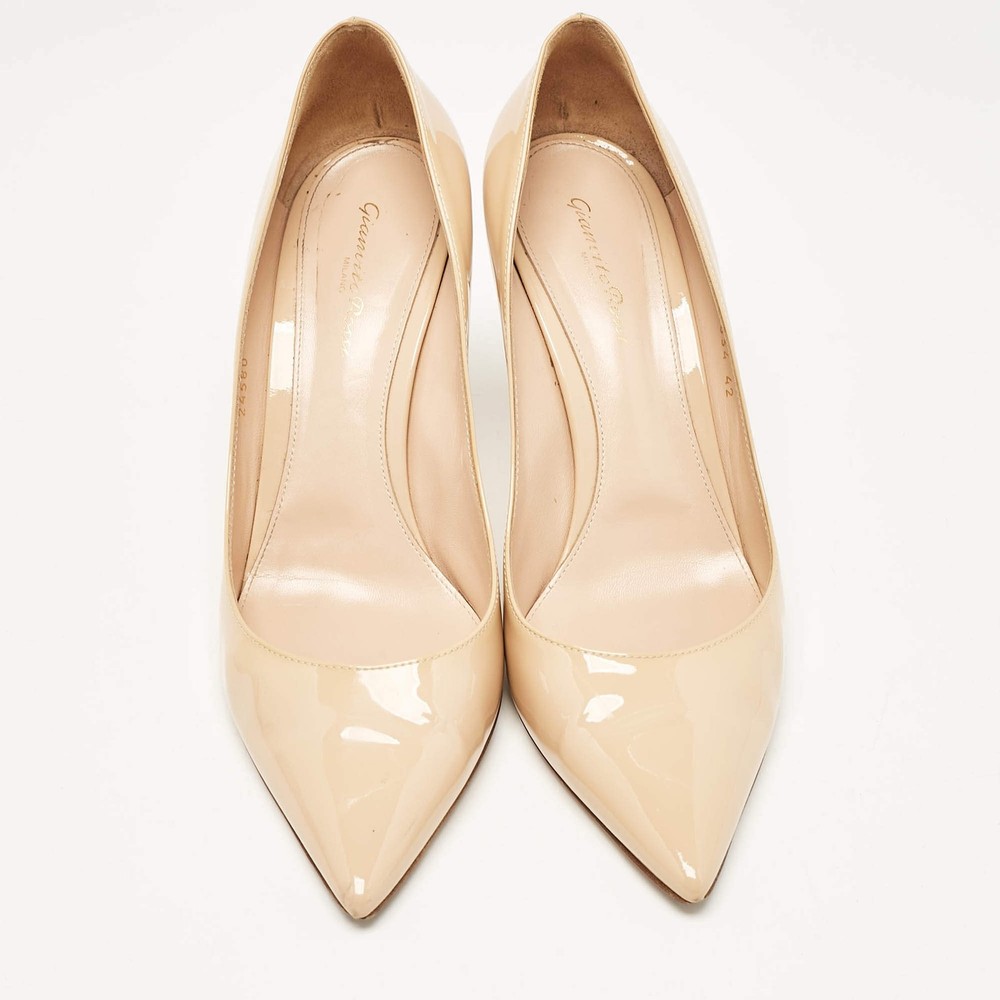 Our eBay Store About Us Contact Us Add to Favorite Sellers Gianvito Rossi Beige Patent Leather Plexi Pumps Size 42 Make a chic style statement with these designer pumps. They showcase sturdy heels and durable soles, perfect for your fashionable outings! Product Details Brand Gianvito Rossi Color Beige Includes Original Box, Extra Heel Tips, Info Booklet Outsole Length 25 cm Outsole Width 8.5 cm Size 42 Certified by The Luxury Closet This item has gone through a detailed authentication process overseen by our experts. We offer a lifetime guarantee of authenticity on all our items. How We Check The in-house team of experts at The Luxury Closet is highly trained to verify the authenticity and the condition of the luxury products. They ensure that only 100% authentic items are put on sale.The evaluation process is unique with its own mix of assessment criteria and differs according to the category. Each item is evaluated based on the following combination of hallmarks, hardware, stitching, symmetry, material, craftsmanship, stamping, codes, hologram stickers, and packaging. Our authenticators also check if the items have been modified or amended (e.g., aftermarket diamonds, replaced batteries, repaired bags, etc.) International Buyers Import duties, taxes and charges are not included in the item price. These charges are the buyers responsibility. Please check with your country’s customs office to determine what these additional cost will be prior to buying.