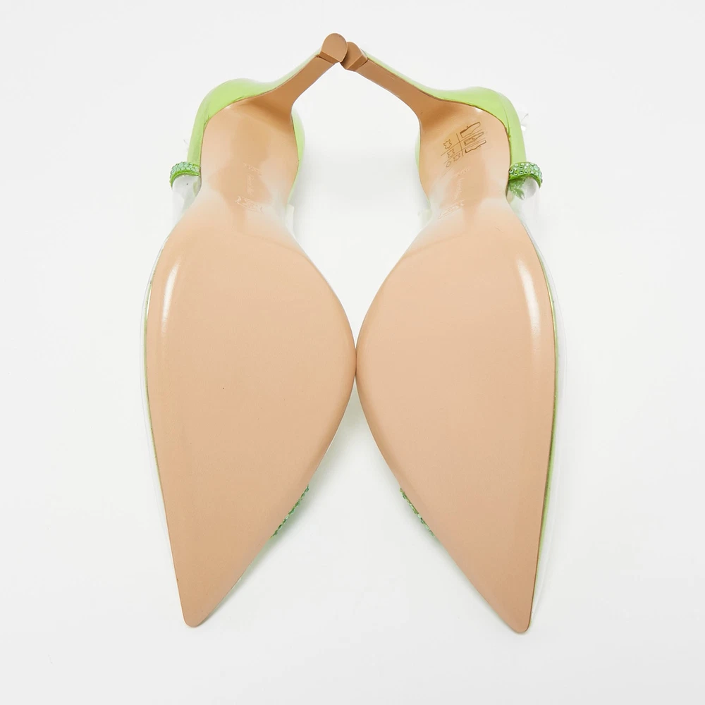 Gianvito Rossi Green Patent Leather Plexi Pumps Size 38.5