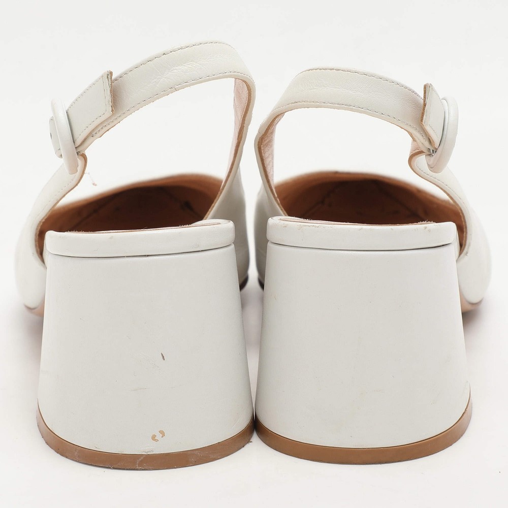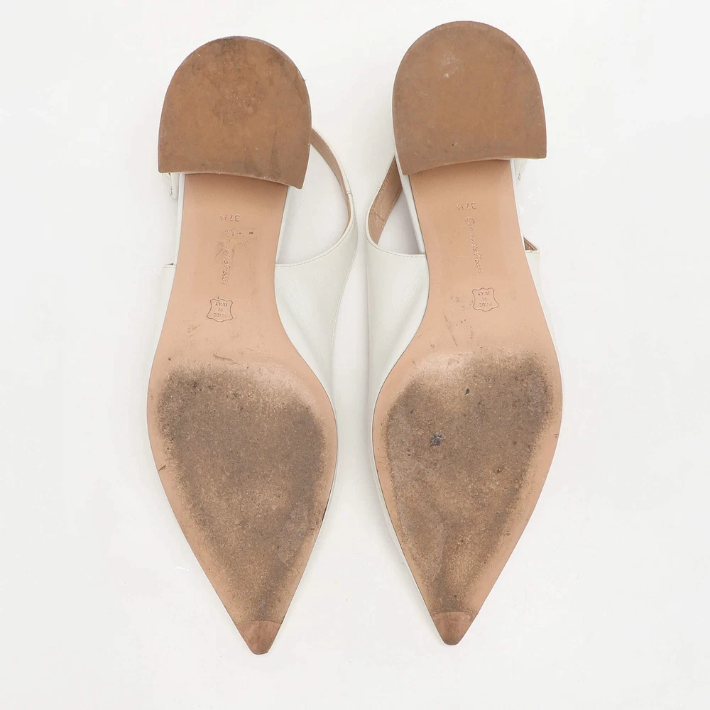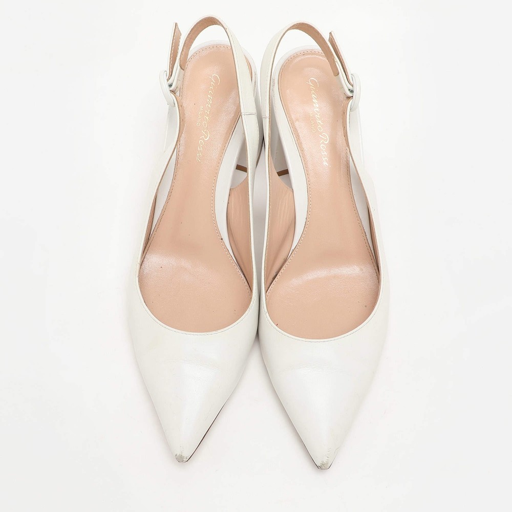 Our eBay Store About Us Contact Us Add to Favorite Sellers Gianvito Rossi White Leather Slingback Pumps Size 375 These white leather slingback heels by Gianvito Rossi are exquisite. Impeccably crafted from leather, they offer both style and comfort. The chic buckle closure provides a secure fit, while the sophisticated design ensures they complement you in any setting. Product Details Brand Gianvito Rossi Color White Includes The Luxury Closet Packaging Outsole Length 26 cm Outsole Width 8 cm Size EU 37.5 (US 7/UK 4.5) Certified by The Luxury Closet This item has gone through a detailed authentication process overseen by our experts. We offer a lifetime guarantee of authenticity on all our items. How We Check The in-house team of experts at The Luxury Closet is highly trained to verify the authenticity and the condition of the luxury products. They ensure that only 100% authentic items are put on sale.The evaluation process is unique with its own mix of assessment criteria and differs according to the category. Each item is evaluated based on the following combination of hallmarks, hardware, stitching, symmetry, material, craftsmanship, stamping, codes, hologram stickers, and packaging. Our authenticators also check if the items have been modified or amended (e.g., aftermarket diamonds, replaced batteries, repaired bags, etc.) International Buyers Import duties, taxes and charges are not included in the item price. These charges are the buyers responsibility. Please check with your country’s customs office to determine what these additional cost will be prior to buying.