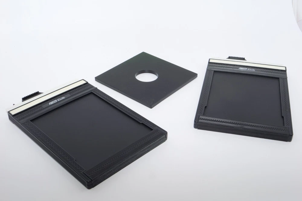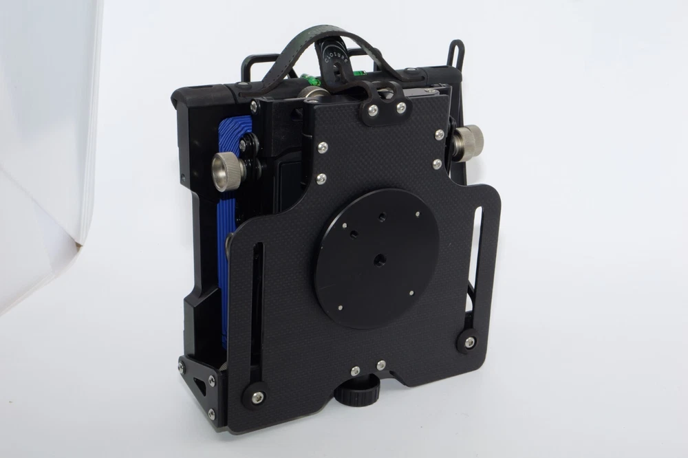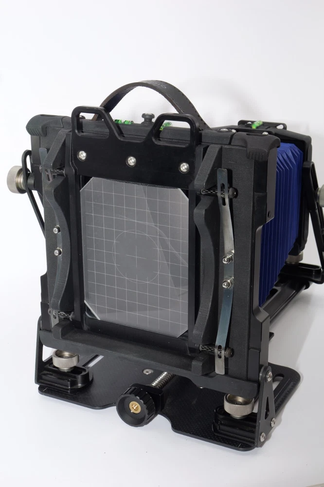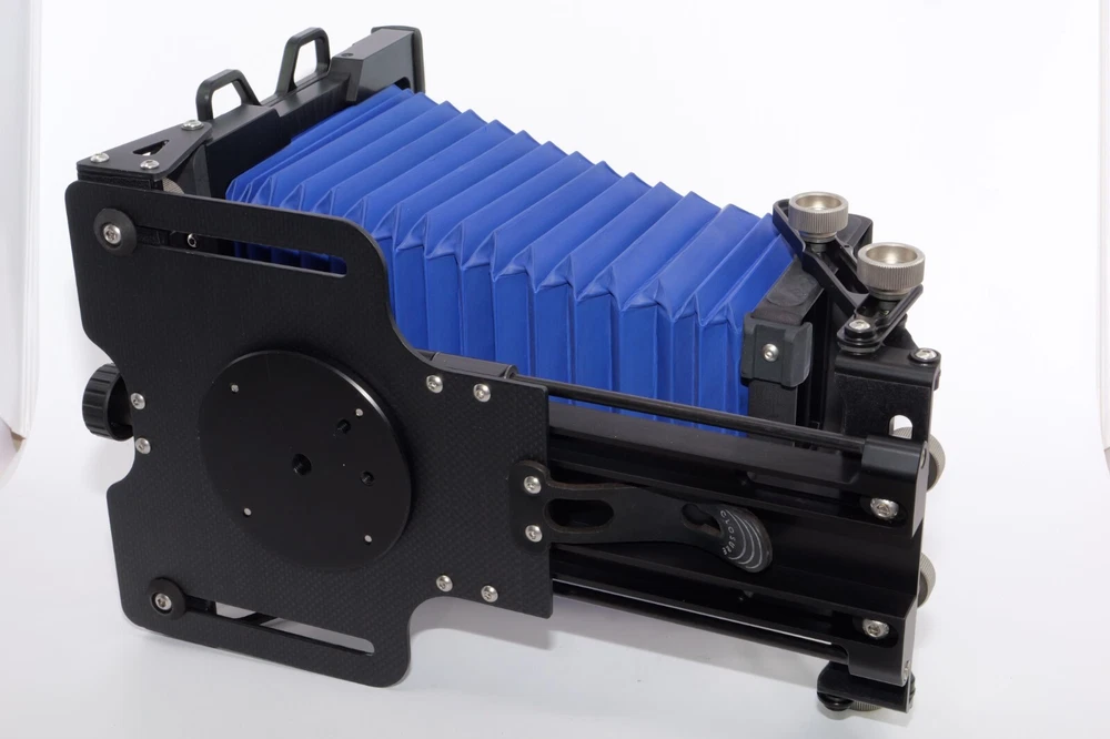 Gibellini ACN45 4x5 Field Camera. Made in Italy. High quality deluxe 4x5" large format field camera made from carbon fiber, and aluminum. Sturdy 4x5 camera with precise movements, and aluminum rails. Carbon fiber camera bed. Lined ground glass focusing screen. Light weight camera. Contrasting color royal blue normal & wide angle bellows. Chrome knobs on the camera. Professional traditional folding 4x5 field camera. Camera is in Mint/Mint- or 9.5 of 10 cosmetic condition. No dings or dents. Little sign of use. Good working order. Includes original box, Gibellini ACN 45 camera with normal bellows in Blue , and Wide Angle Bellows also in Blue . extra set of black knobs included, and two(2) 4x5 plastic Fidelity Elite sheet film holders. *************************************************** Gibellini crafts folding cameras that seamlessly blend heritage with innovation. These Italian-made beauties boast a distinctive design aesthetic and leverage cutting-edge technology to deliver exceptional functionality and performance. Furthermore, Gibellini's meticulous attention to detail extends to the materials used, incorporating high-strength, lightweight elements like aerospace titanium and carbon fiber to ensure exceptional technical quality and a premium user experience. Gibellini ACN 45 4x5 View Camera is a professional, traditional folding camera. It is made with Aluminum and Carbon Fiber. The camera is unibody CNC milled and includes a Carbon Fiber base, providing unparalleled stability while being lightweight. Aluminum rails allow for precise movements. EXTERNAL DIMENSIONS: 260x220x80 mm WEIGHT: 2.4kg / 5.3 lbs MIN/MAX extension bellows: 50 – 340 mm MIN/MAX with bag bellows: 0 – 400 mm FRONT RISE/FALL: + 55 / – 35 mm FRONT SHIFT: +/- 25 mm FRONT TILT: +/- 45° limited by bellows FRONT SWING: +/- 45° REAR RISE/FALL: 0 mm REAR SHIFT: +/- 15 mm REAR TILT:– 20° / + 90° (closure direction) REAR SWING: +/- 45° LENSBOARD: Requires Gibellini Size or Gibellini Adapter (Special Order, please send inquiry, Linhoff adapter is item #392040) TRIPOD MOUNT: 3/8” and 1/4 “ CAMERA BACK: horizontal/vertical positioning HOLDERS: compatibility with all commercial and Gibellini MECHANISMS: Aluminum/Carbon BELLOWS COLOR: Black (Special Order options available) BODY COLOR: Black (Special Order options available) ***************************************************** Nice high quality unique 4x5 Gibellini carbon fiber and aluminum field camera from Italy with extra wide angle bellows in Mint- condition. Sells with no reserve at a price of $1875 . I have LOT more Wisner View Cameras, Large Format cameras, Lenses and Accessories, Soft Focus and Barrel lenses on my other auctions, web page and eBay Store.