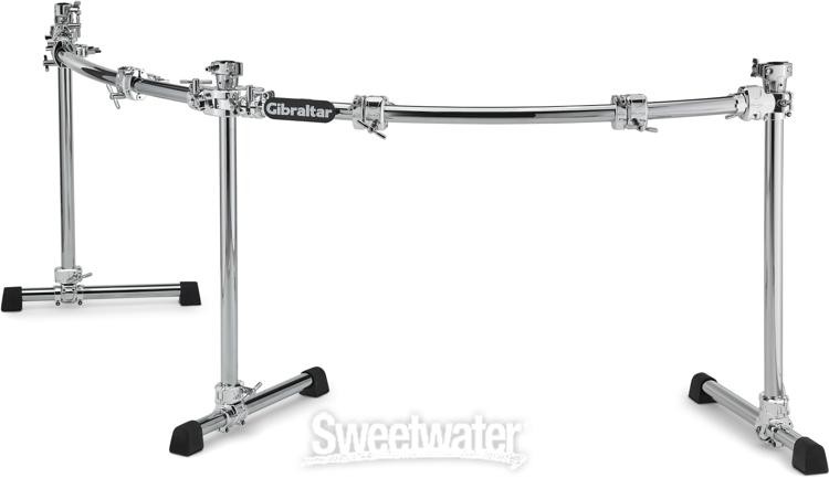 Rock-solid Security with Gibraltar Drum Racks Even if you don't play a massive Terry Bozzio–style drum set, Sweetwater drummers believe you'll still benefit from the speed, consistency, and clean look that results from adopting a rack-based setup. The name Gibraltar is synonymous with drum racks, and when you look at this GDR200C-CHR curved double bass drum rack, it's easy to see why that is. With nearly 11 feet of total tubing plus three T-legs and plenty of clamps and memory locks, this rock-solid drum rack handily accommodates drum sets with double bass drums. Additionally, the GDR200C-CHR comes with its own L-shaped drum key for quick and easy assembly. Lastly, should your kit grow in the future, the GDR200C-CHR's compatibility with other Gibraltar rack accessories means that you can expand your rack along with your kit, no problem.Your Gibraltar GDR200C-CHR rack includes: 3 x 30-in. GLMP Long Mounting Post with deluxe Sweetwater is an Authorized Gibraltar Dealer Genuine New Item Sweetwater's 2-year warranty Gibraltar GDR200C-CHR Curved Double Bass Drum Rack Drum Rack with 3 T-legs and 4 Multi-clamps Rock-solid Security with Gibraltar Drum Racks Even if you don't play a massive Terry Bozzio–style drum set, Sweetwater drummers believe you'll still benefit from the speed, consistency, and clean look that results from adopting a rack-based setup. The name Gibraltar is synonymous with drum racks, and when you look at this GDR200C-CHR curved double bass drum rack, it's easy to see why that is. With nearly 11 feet of total tubing plus three T-legs and plenty of clamps and memory locks, this rock-solid drum rack handily accommodates drum sets with double bass drums. Additionally, the GDR200C-CHR comes with its own L-shaped drum key for quick and easy assembly. Lastly, should your kit grow in the future, the GDR200C-CHR's compatibility with other Gibraltar rack accessories means that you can expand your rack along with your kit, no problem. Your Gibraltar GDR200C-CHR rack includes: 3 x 30-in. GLMP Long Mounting Post with deluxe tom/cymbal arm adapter 2 x 40-in. SC-GPR40C Curved Drum Rack Extension Tube 3 SC-GCSQCLTLA Chrome Series Quick Clamp Long T-leg Assembly with QR T-clamp 2 SC-GCRQT Road Series Chrome Quick T-clamp 6 SC-GCML Memory Lock 4 SC-GCRMC Road Series Chrome Multi-clamp 4 SC-GCHML Chrome Series Hinged Memory Lock with Wingnut 1 SC-GDRLOGO Drum Rack Logo Clip 3 x 3/4-in., 7/8-in., and 1-in. SC-RMAADP Nylon Sleeves for deluxe tom/cymbal arm adapter 1 L-shaped drum key Gibraltar GDR200C-CHR Features: Top-tier drum rack with Gibraltar build quality Accommodates drum sets with double bass drums Enables you to set up your drum set with greater speed and consistency Lends a clean and streamlined appearance to your kit Nearly 11 ft. of total tubing Easily expandable via other Gibraltar rack accessories Includes an ample amount of clamps and memory locks Comes with its own L-shaped drum key for quick assembly Specification Detail Type Curved Double Drum Rack Compatibility Double Bass Drum Kits Dimensions 3 x 30" Vertical Bars, 2 x 40" Curved Horizontal Bars Included Hardware 1 x 3-way Clamp, 2 x T-clamp, 6 x Memory Locks, 4 x Mutli-clamps, 1 x L-shaped Drum Key RETURN INFORMATION We want you to be completely happy with your purchase from Sweetwater. If you are not satisfied with your product, you may return it for a refund of the purchase price within 30 days. If your purchase was eligible for Free Shipping, the shipping cost will be deducted from your credit or refund. Returns must be in the complete and original packaging with all accessories and complete documentation (Owner's Manual, warranty card, quick start guides, etc.), show no signs of wear or use, and include a Return Authorization number or be subject to a restocking fee.
