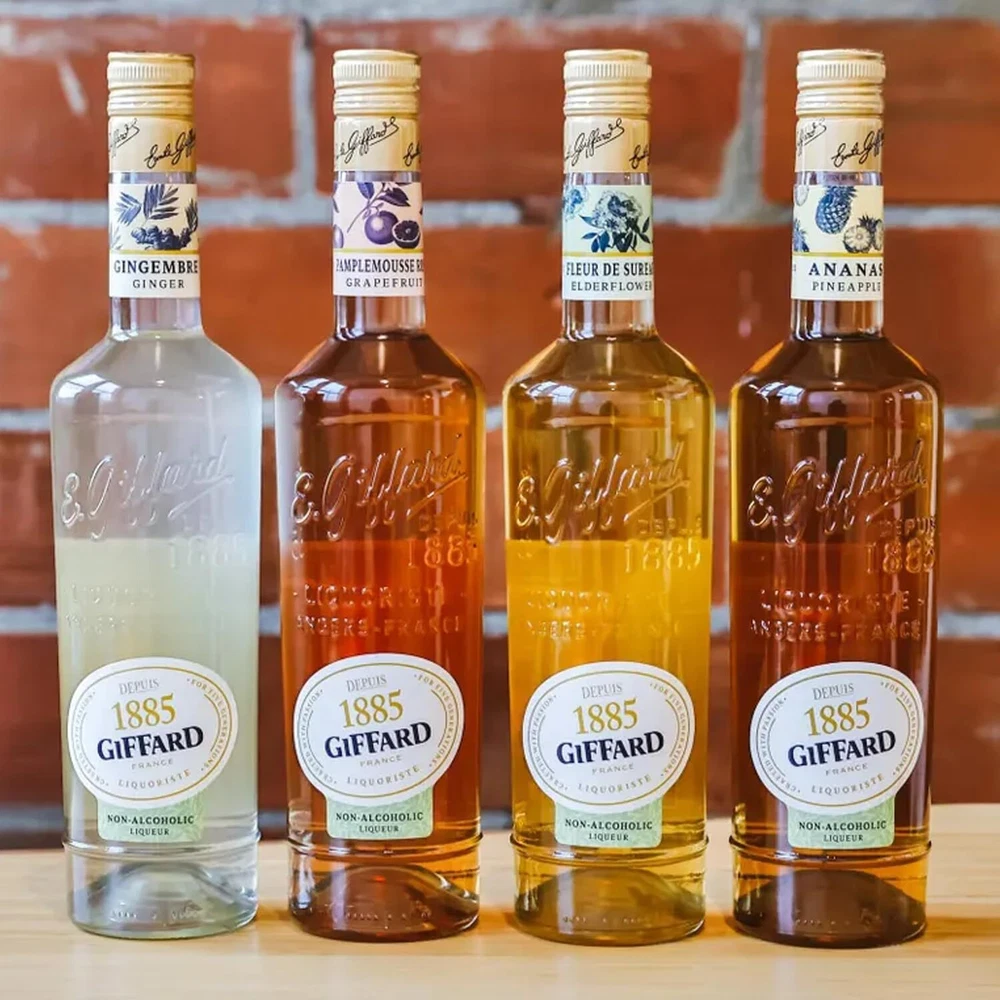 Inspired by their extensive range of liqueurs and employing the shrub technique, Giffard intro- duces a new line where fruits and plants are carefully macerated in wine vinegar. The outcome? A collection of alcohol - free products boasting remarkable aromatic complexity and a reduced sugar content, accentuating their intense flavors. Drawing from the essence of pl ants, Giffard has always been dedicated to sourcing the most refined ingredients, flavorful fruits, and aromatic plants for their liqueurs and syrups. This commitment to quality is evident in the Giffard Alco- hol - Free range, which offers a sensory journey w ith each sip, characterized by complexity, mouthfeel, and added value to cocktails. Giffard's Alcohol - Free range opens up new possibilities for recreating classic cocktails such as the on the Beach, Mai Tai, and the iconic Spritz in a non - alcoholic it eration. By providing this option, Giffard empowers cocktail enthusiasts to enjoy their favorite drinks with the same depth of flavor and complexity, but without the alcohol content. Grapefruit: GIFFARD Grapefruit Alcohol Free is made from a maceration of gr apefruit zest in white wine vinegar. A nice balance between bitterness, acidity and sugar. A mixture of citrus and fruity citrus and woody. Winy notes may appear at the end of the mouth and leave a slight astrin- gency Giffard unveils a new line inspired by their liqueur expertise, employing the shrub tech- nique to macerate fruits and plants in wine vinegar. The result is a range of alcohol - free products with exceptional aromatic complexity and reduced sugar content, highlighting their intense flavors. With a dedication to sourcing the finest ingredients, Giffard emphasizes quality in their Alcohol - Free range, offering a sensory experience characterized by complexity and mouthfeel Giffard's Alcohol - Free line presents an opportunity to recreate beloved cockt ails like the on the Beach and Mai Tai without the need for alcohol. By offering non - alcoholic alternatives, Giffard enables cocktail enthusiasts to savor the same flavor depth and complexity in their favorite drinks, minus the alcohol content Includes (2) 700ml Bottles , and holder and tasting notes/recipes