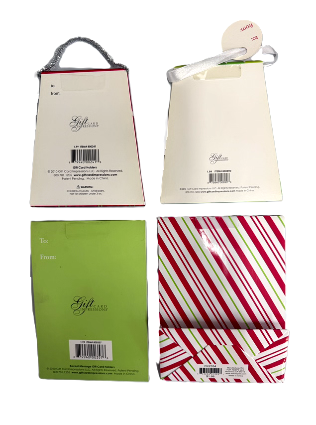 1 Gift Bag 6.5" tall & 3 Assorted Design Gift Card Holders For Christmas & Holidays As Shown