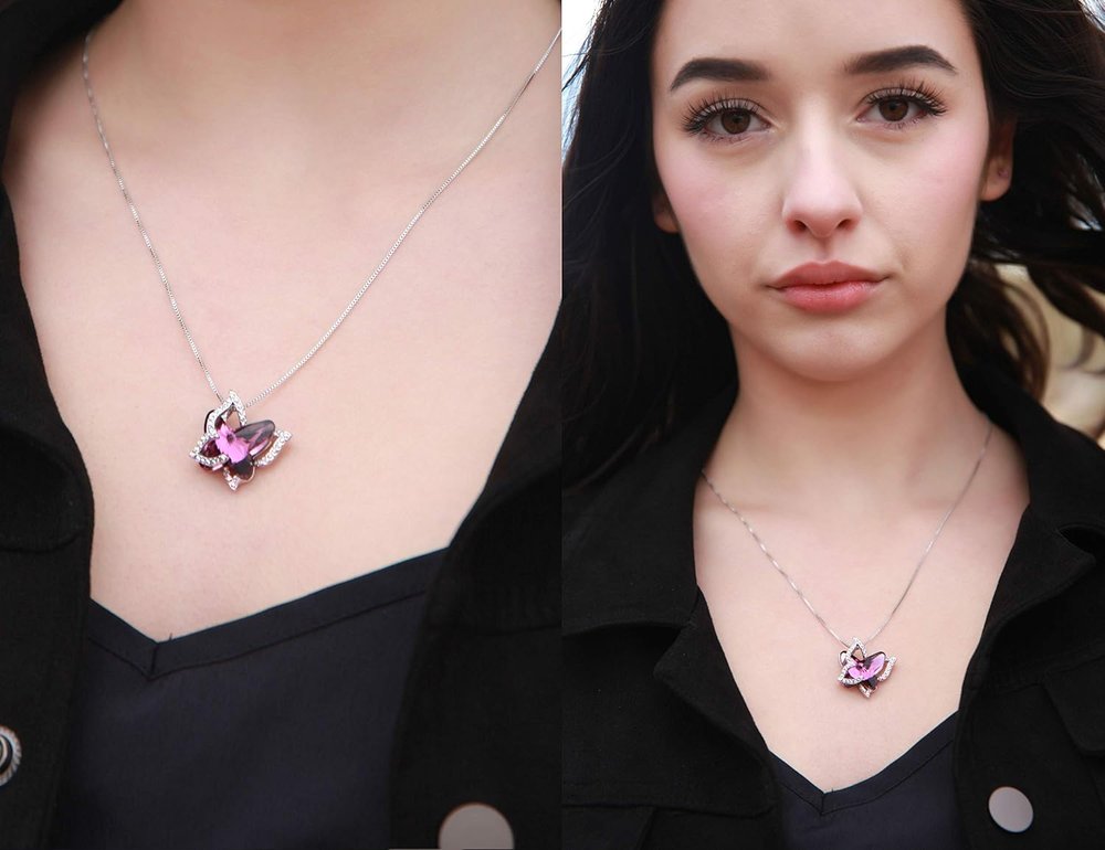 Store New Arrivals Add to Favorite View Feedback Contact Fast deliveries to the customer's home Quality customer service John Make the customers happy! Gift Butterfly Birthstone Crystal Necklace, Silver Tone with 18”+2” Chain, Necklace for Mother’S Day Anniversary Birthday Gifts for Women and Daughter Description Product Description Spread Your Wing Butterfly Pendant Necklace Each design of Germmance is a testament to each woman’s unique presence and charm, unlocking the potential of our minds and the world that belong to us. Every element is unique with a story behind it, mostly inspired by travelling and thriving imaginations from different cultures. From India to the United States, from the Middle East to Thailand, there are owls that represent wisdom, elephant designs that symbolize good luck, crescent moon with star that leads us to light, and collections full of spring and summer themes like butterflies, flowers, and colored alphabets. These colorful, feminine and lovely designs and pieces are the fruits of a meticulous work. March is Light Sapphire Blue and Aquamarine Blue March's birthstones, Light Sapphire Blue and Aquamarine Blue , add a touch of elegance and charm to any jewelry collection . Known for their vibrant hues and timeless appeal, these gemstones symbolize wisdom, protection, and inner strength. 12 Birthstones High Quality Craftmanship and Authentic Birthstone Crystals Our products are made with all high quality material. We use authentic birthstone Crystals - butterfly shape for this design. The main Dark Amethyst Pink Crystal shines shimmering light, symbolizes a purity and sophistication. The cutting of the stones is exquisite, enabling the sparkle and brightness of the pendant from every light setting. A Great Gift for Her Each jewelry is packed with a luxury golden brown gift box with a crystal as finishing touch and a gift bag. It makes the jewelry perfect for a wide variety of gift occasions such as Valentine's Day, Mother's Day, Christmas, and birthdays to your wife, mother, sister, daughter and friend. Chain Box Gem Type No Gemstone Color February Birthstone - Amethyst Dark Pink Crystal Is Discontinued By Manufacturer No Product Dimensions 20 x 0.98 x 0.83 inches; 3 ounces Material Crystal, Metal, Rhinestone Metal rhodium-plated-brass Model number NAS2003PK-Butterfly Height 0.83 inches Width 0.98 inches Length 20 inches Setting Bezel Item Length 18 inches Department womens Number of stones 40 Clasp Lobster ABOUT US We offer the best prices around on high quality products. Our E-store includes media such as books, movies, music and games while offering electronics, toys, sporting apparel, clothing, tools, general home, garden items and more. SHIPPING We are always working hard to ensure your package arrives as soon as possible. Please understand that some factors like weather, high postal traffic, and the performance of shipping companies are outside of our control. We offer free shipping to the lower 48 states and ship within 2 business days of payment, usually sooner. We do not accept P.O. Boxes. Please provide a physical address. For shipping outside of the continental USA, we only use eBay's Global Shipping Program. The item is shipped to KY and then sent to the rest of the world. International customers are responsible for all duties and taxes. Continue to 'check out' to calculate costs for shipping the item to your country. Messages regarding eBay's Global Shipping Program MUST be directed at eBay EXCLUSIVELY. RETURNS We offer a 30-Day Return Policy on items in which you are not completely satisfied with. You have the option of a full-refund or an exchange of the item. No returns are available on items shipped outside of the USA PAYMENT We accept PayPal. CONTACT US This page content is yet to come Please ad us to your favorite seller and visit again later Thank You CUSTOMER SATISFACTION We try our very best to make sure every customer is completely satisfied. If there's a problem, message us! We're happy to help. WE ACCEPT