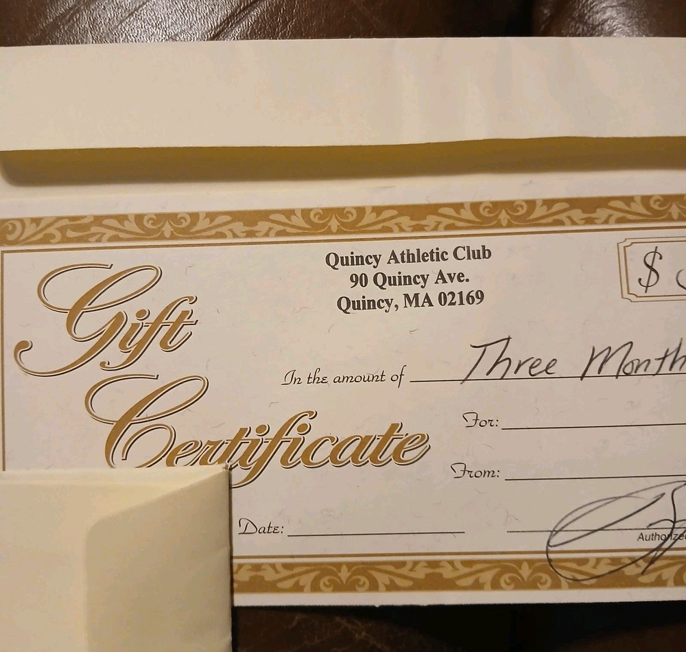 Gift Card Certificate Quincy Athletic Club Gym MA 3 Months NO EXP