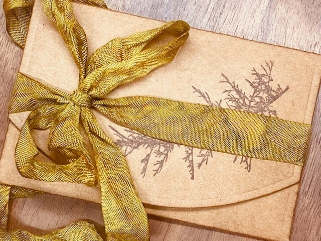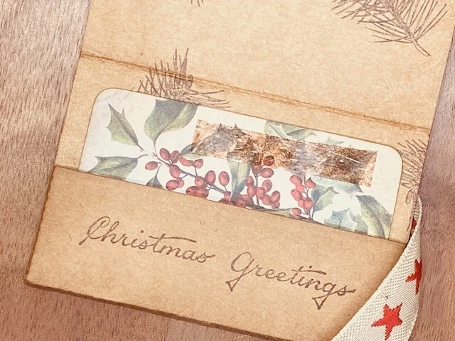 The final envelope is 3.75" x 2.5". The die cuts flaps to glue the sides of the bottom portion. There are 2 slits in the back of the envelope to thread a ribbon. The slits are 0.75" tall. If you would like to specifically view Holiday items in my shop, go to magnifying glass and type "Christmas" Please look at my other listings and if you would like multiple items, message me. I consolidate shipping costs.
