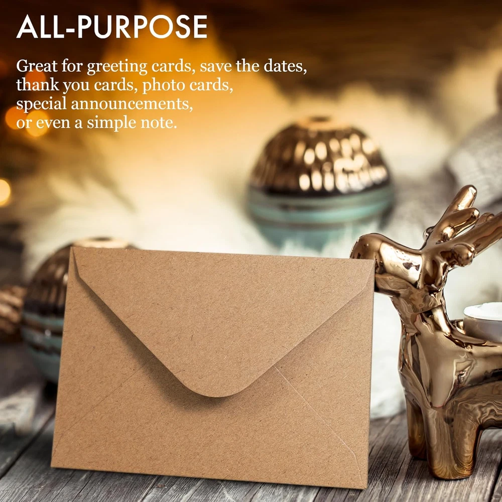 KRAFT MINI ENVELOPES: Perfect sized kraft paper envelopes for gift cards, wedding placeholders, name cards, gift cards, thank you notes, gift tags and more! GREAT FOR HOLIDAYS AND EVENTS: Perfect for holidays, weddings, baby showers, birthdays and banquets. VALUE PACK: Make sure to always have some mini envelopes on hand when you need them! EASY TO SEAL GUM FLAP ENCLOSURE: Apply water to edges of flap and stick DIMENSIONS: Each mini envelope measures 4 x 2.7 inches. These are the perfect sized envelopes for gift cards, wedding placeholders, name cards, gift cards, thank you notes, gift tags and more! They are perfect for holidays, weddings, baby showers, birthdays and banquets. Make sure to always have some mini envelopes on hand when you need them! Each mini envelope measures 4 x 2.7 inches. NOTE: These envelopes can NOT be mailed via the United States Postal Service (USPS).