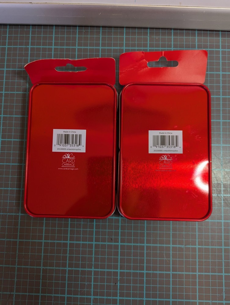 Color: Multicolor Occasion: Christmas Shape: rectangular Material: metal UPC: 091037353184 Type: Gift Box Size: Medium Country of Origin: China Character: Santa Claus Brand: Card Carriage gtin13: 091037353184 Number of Items: 2