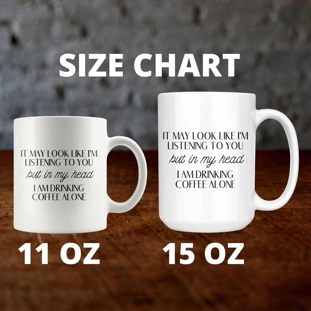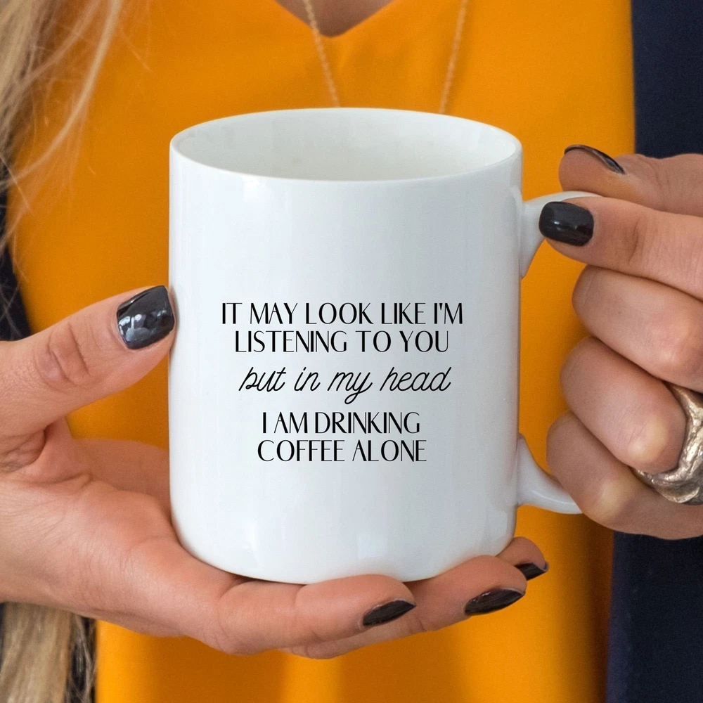 Gift For Anyone Funny Gifts Coffee Mug In My Head I'm Drinking Coffee Alone Gift Product Details.. This high quality 11oz. ceramic white mug has a premium hard coat that provides crisp and vibrant color reproduction sure to last for years. Perfect for all hot & cold beverages. The highest quality printing possible is used. It will never fade no matter how many times you wash it. Material: 100% Ceramic. Print both sides. Dishwasher and Microwave Safe. High Gloss + Premium White Finish. Printed in the U.S.A. Personalized & Custom. We support personalized and custom mug to add custom, when placing an order, you can add notes to the "order note" in shipping address section. Also you can contact us directly via message. Shipping Info. Ready to ship in 1 to 2 business days, All products are made-to-order and proudly printed in the United States. Shipped by USPS and DHL, You will receive your order in 5-7 days. Replace & Refund. All products are defective during shipping broken, chipped will be replaced free of charge. You are not satisfied with the product, we will refund 100% money to you. If any other issues arise, please do not hesitate to message, we would be more than happy to assist you.